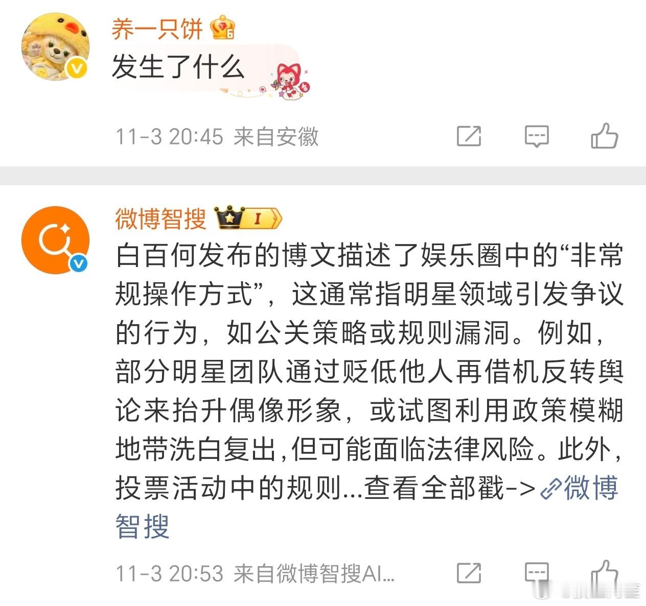 白百何还没说啥呢,微博智搜替她回答完了[泪奔]