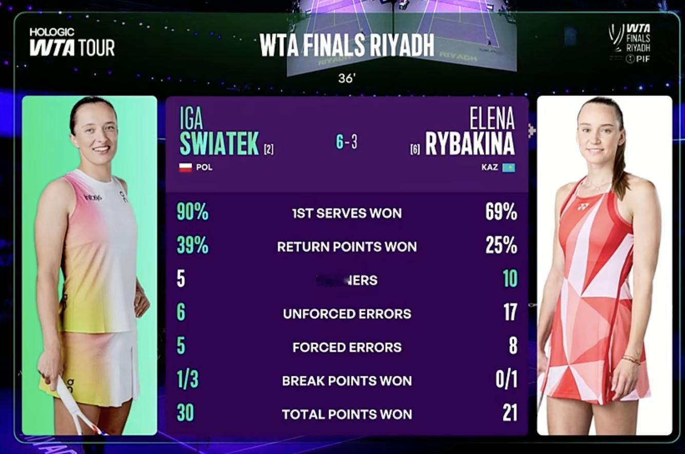 斯瓦泰克vs莱巴金娜 莱巴首盘3-6丝袜,UE数为17[皱眉]