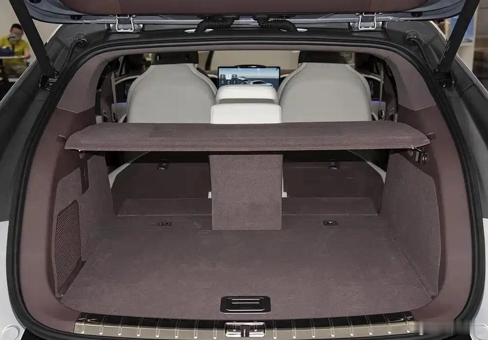 以腾势Z9GT为例,一台车长将近5.2米、轴距超过3.1米的猎装车,由于疯狂堆砌后轴双电机、主动悬架以及后轮转向等大量冗余配置,牺牲了不少后排及后备箱空间,再加上后排中置冰箱无法放倒,与猎装车用户极为关注的空间卖点背道而驰(图2)