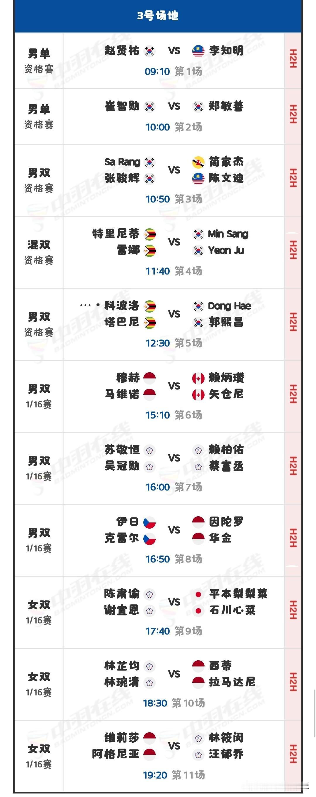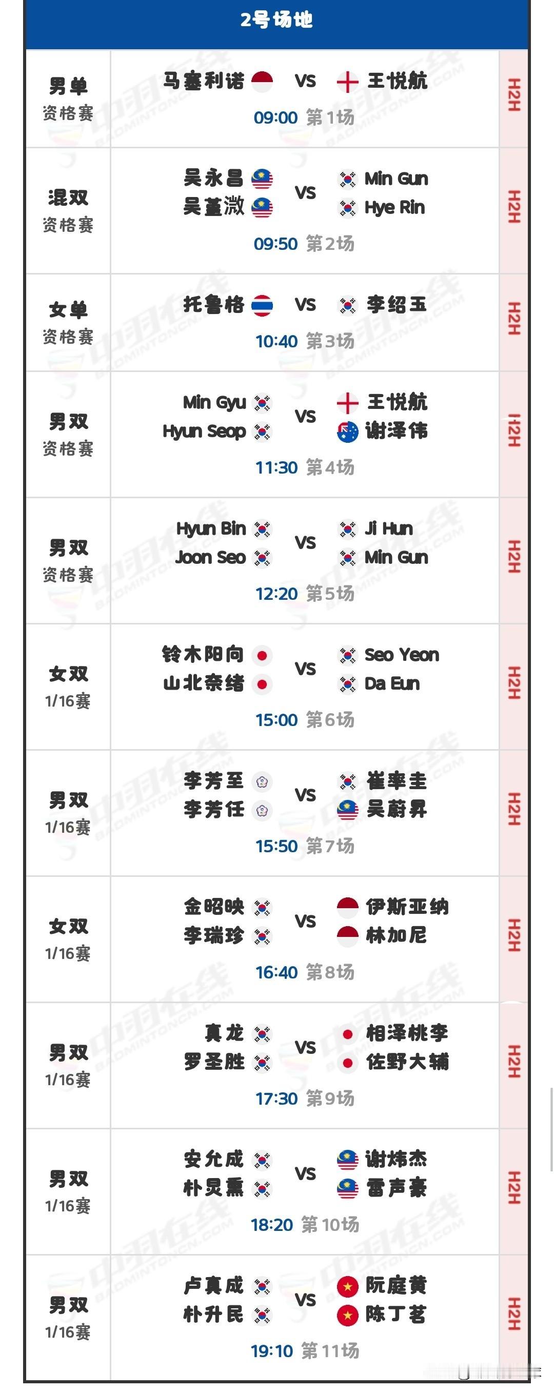 11月4日韩国羽毛球大师赛首日对阵安排 明日,2025年韩国羽毛球大师赛(超级300)将在韩国益山市拉开战幕。因备战2025年全运会羽毛球比赛,国羽在本站赛事依旧未报名参赛。 明日北京时间09:00,资格赛将率先打响;下午15:00,1/16决赛(一),也就是首轮上半区的比赛将接踵而至。届时,四块场地将同时进行比赛,详细对阵安排如下: 羽毛球赛事 羽毛球 羽毛球爱好者 羽毛球大师赛 羽毛球比赛