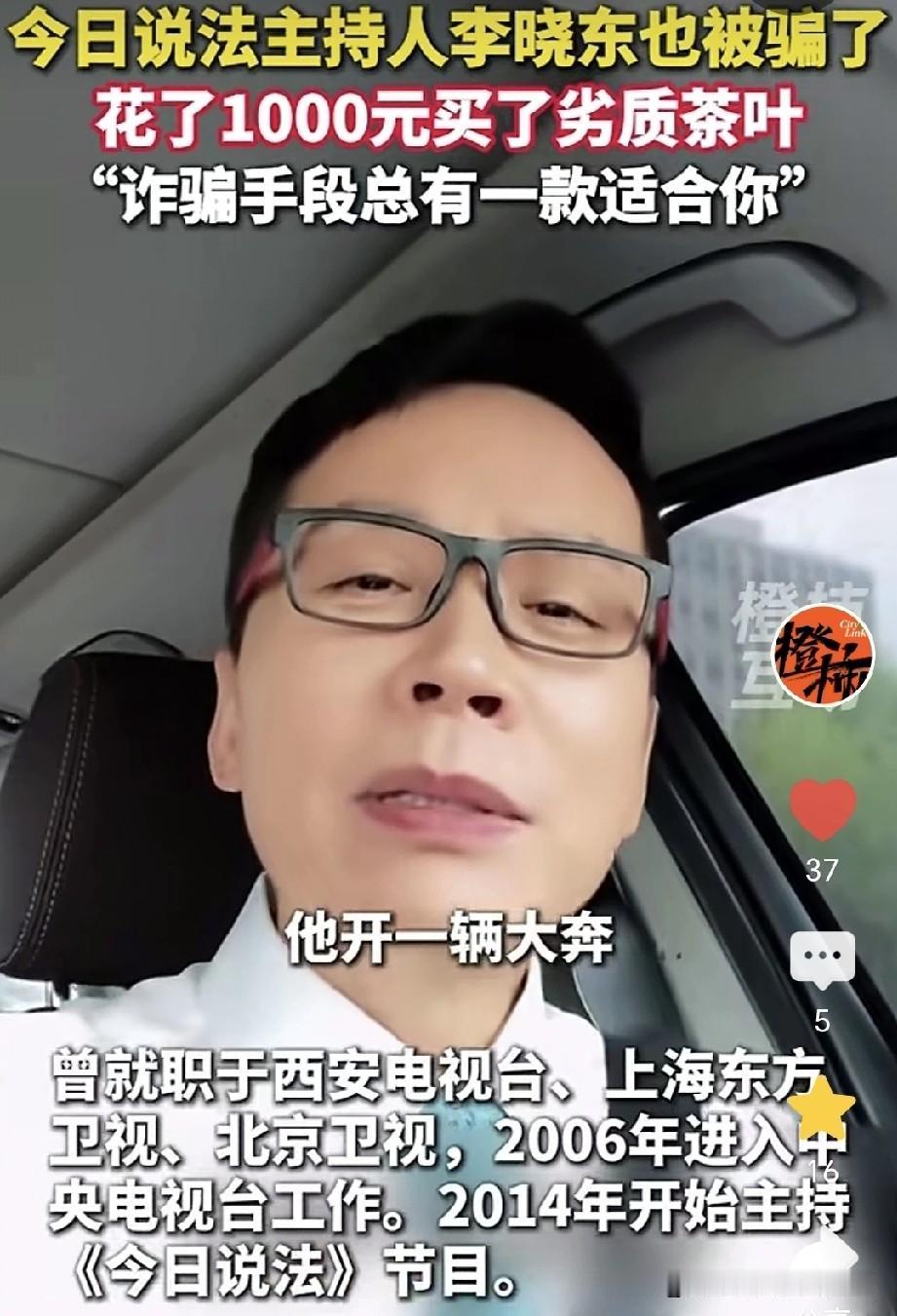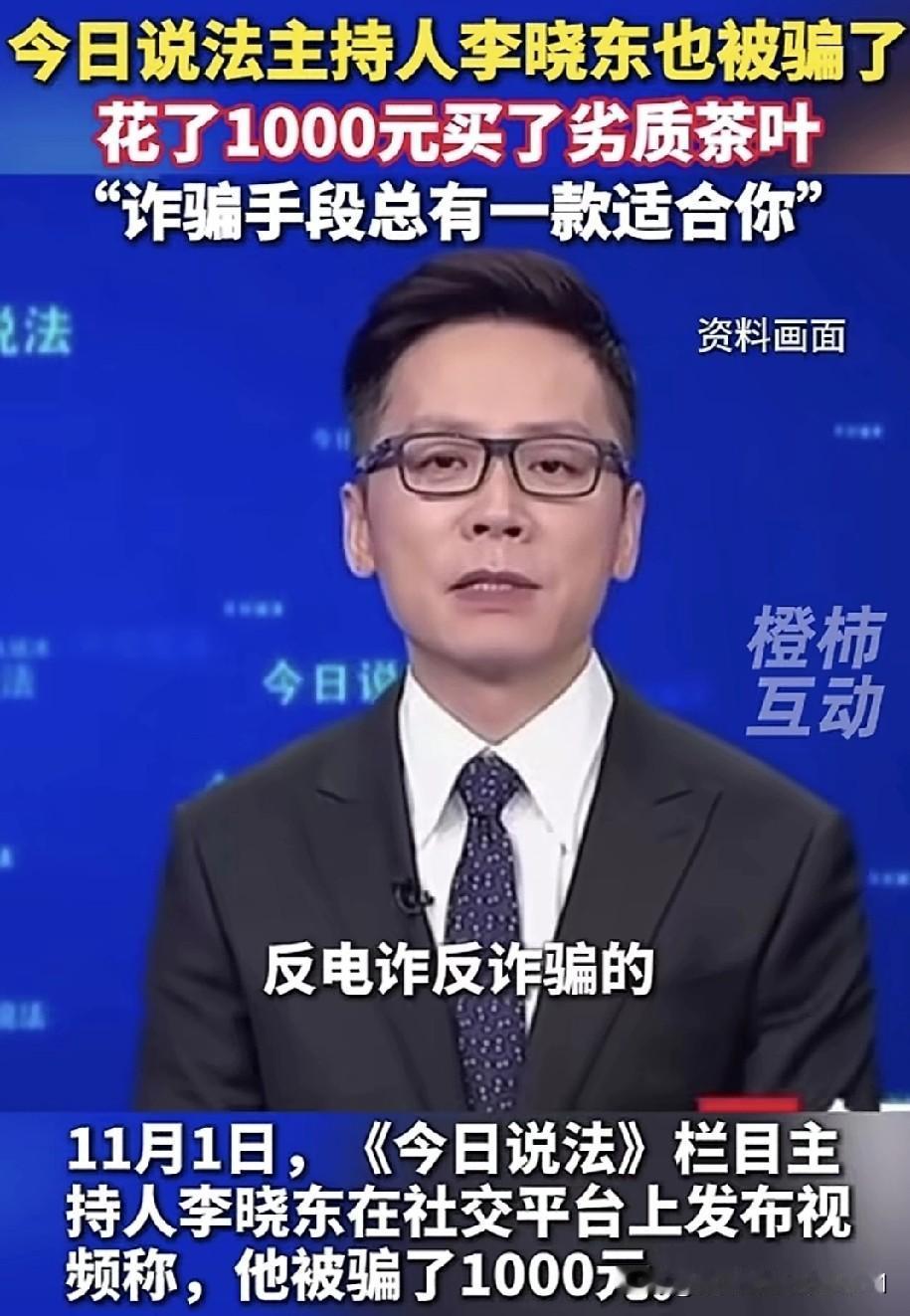 今日说法主持人李晓东自曝,即便自己天天宣传反诈,也还是上了当,花1000元买了茶