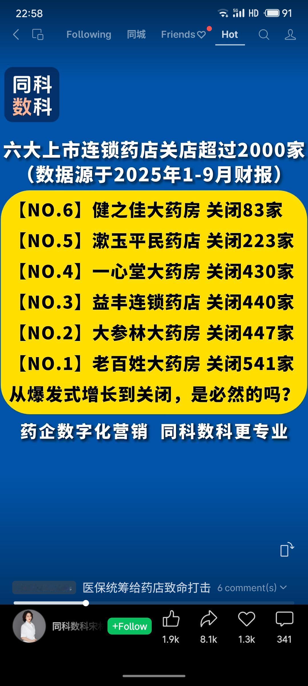 六大上市连锁药店2025年前三季度关店超2000家,反映行业正经历深度调整。一方面,医保控费、集采等政策压缩利润空间;另一方面,前期快速扩张导致门店过剩、竞争加剧。行业或将从规模扩张转向精细化运营与数字化转型,以寻求新增长点。