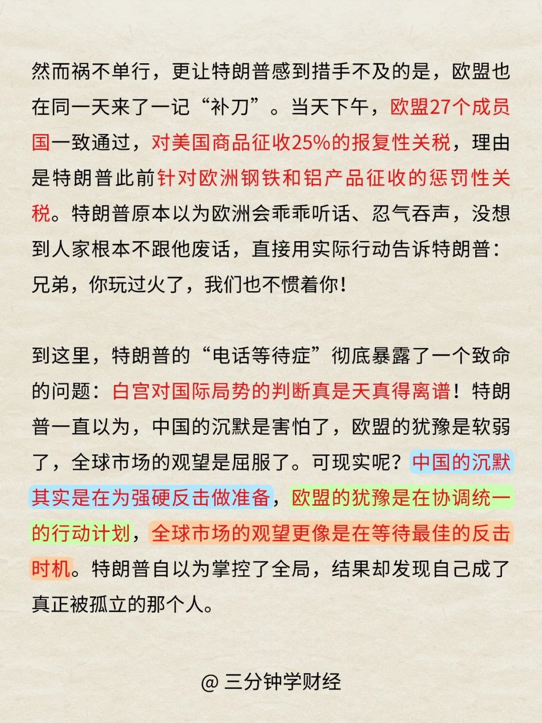 在我们最近发生一个比较有趣的事,号称特朗普电话闹剧。各位小伙伴,你们知道?电话没等到,却等到了欧洲的“友情回击”,如果你们有什么看法,可以评论留言!