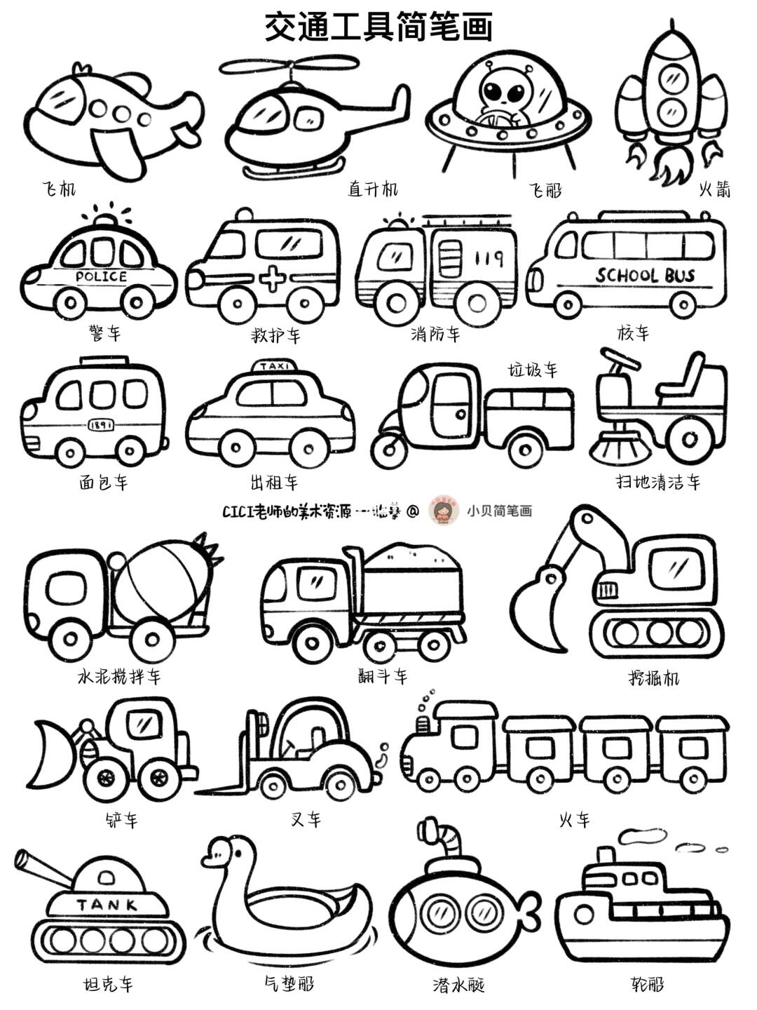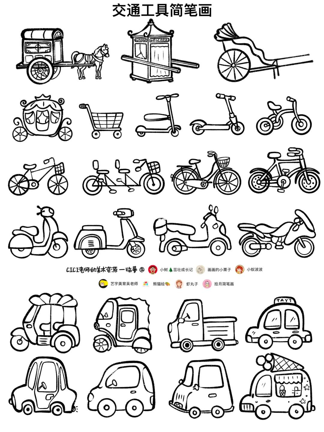 📚适用于主题画、手抄报、黑板报、手账本上,及与“车”、“旅行”相关的美术课程: