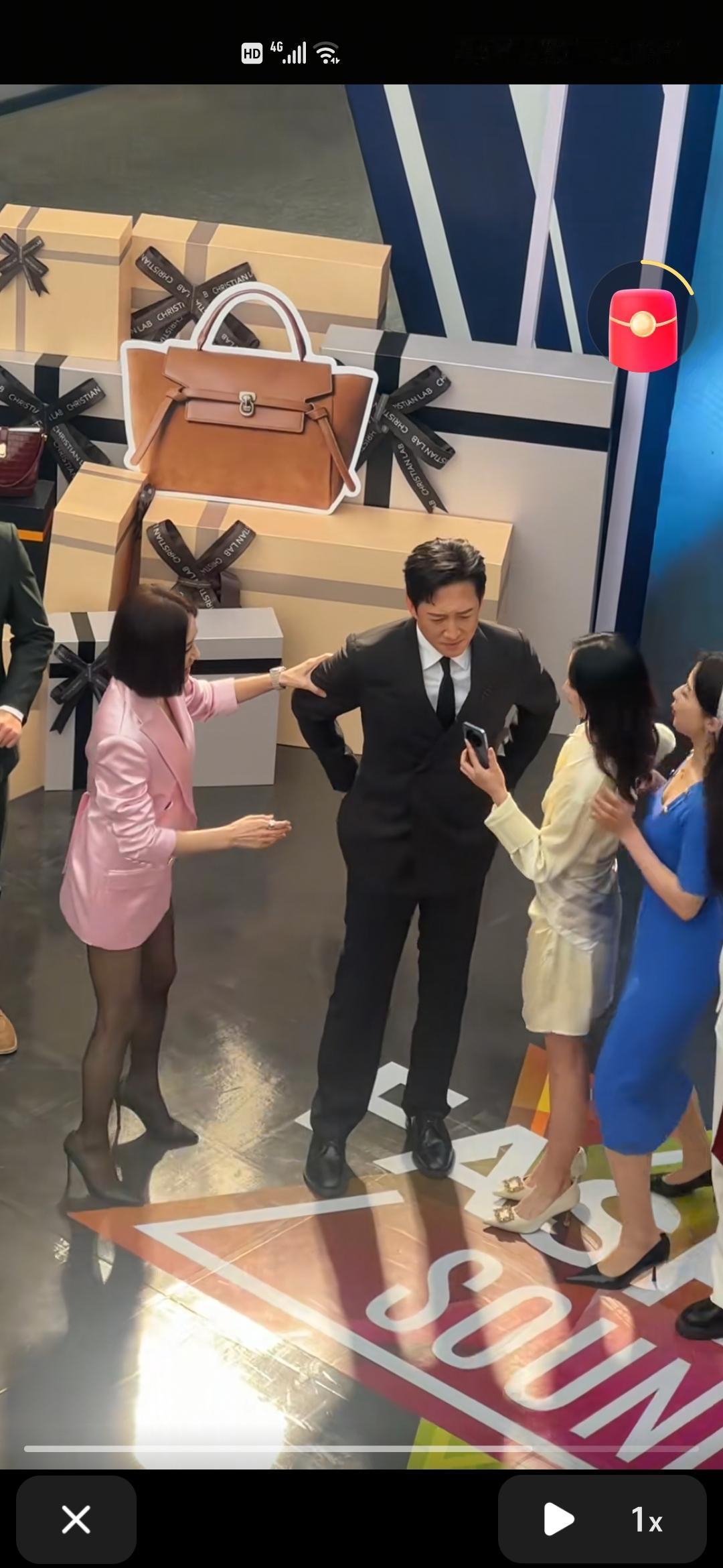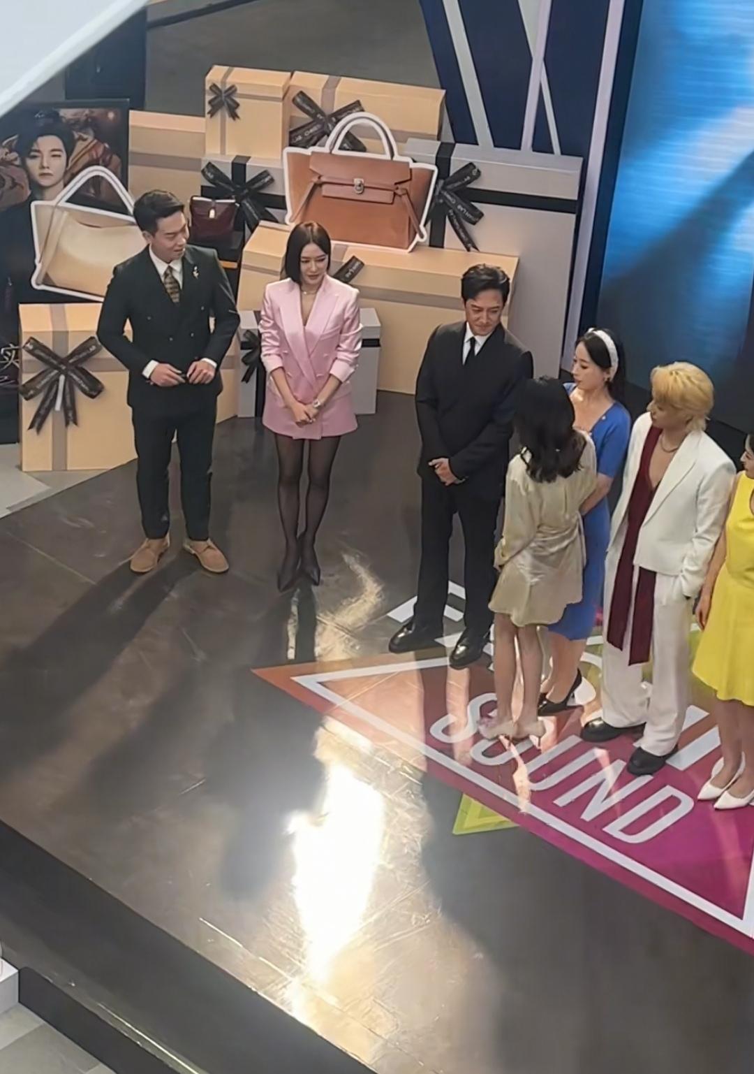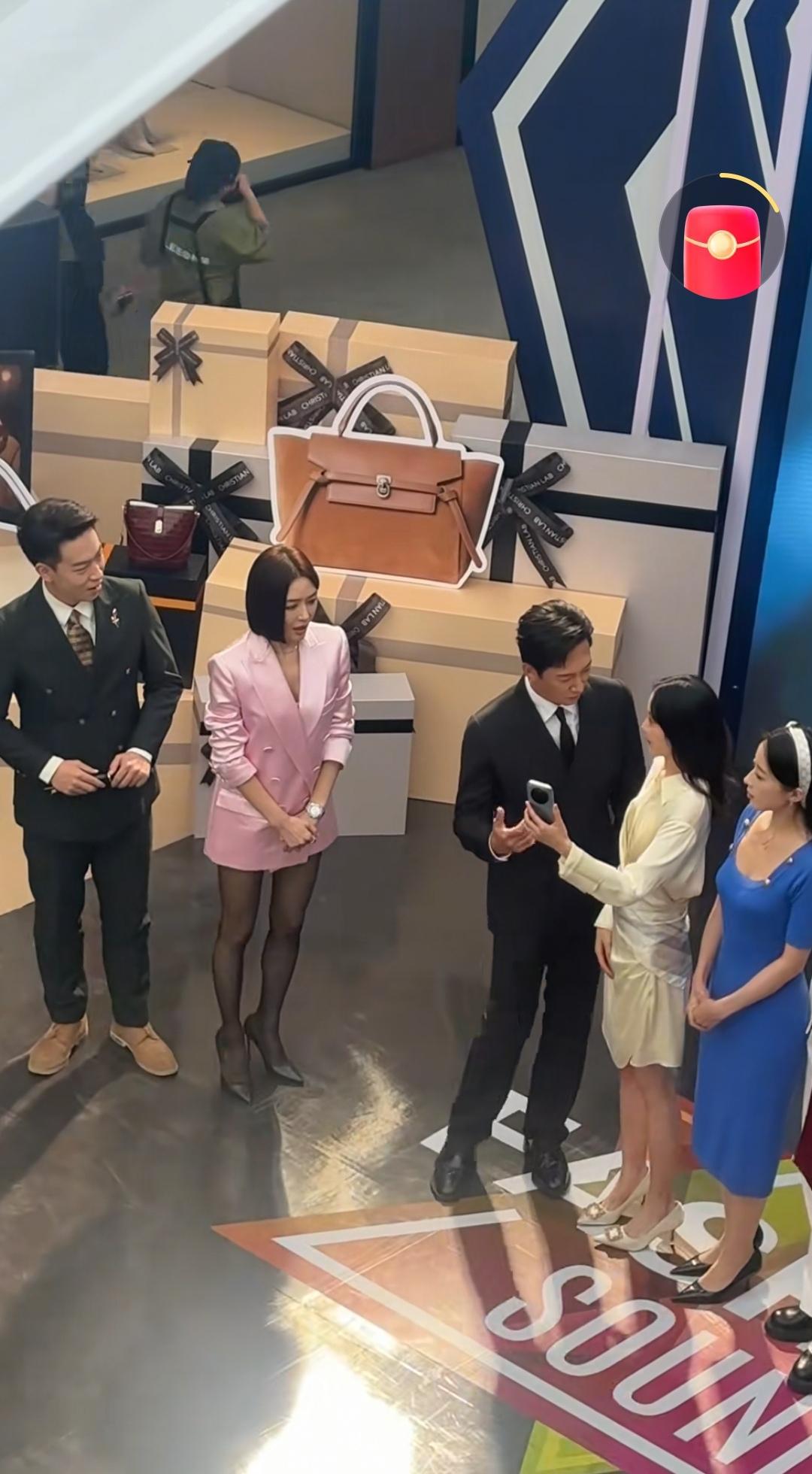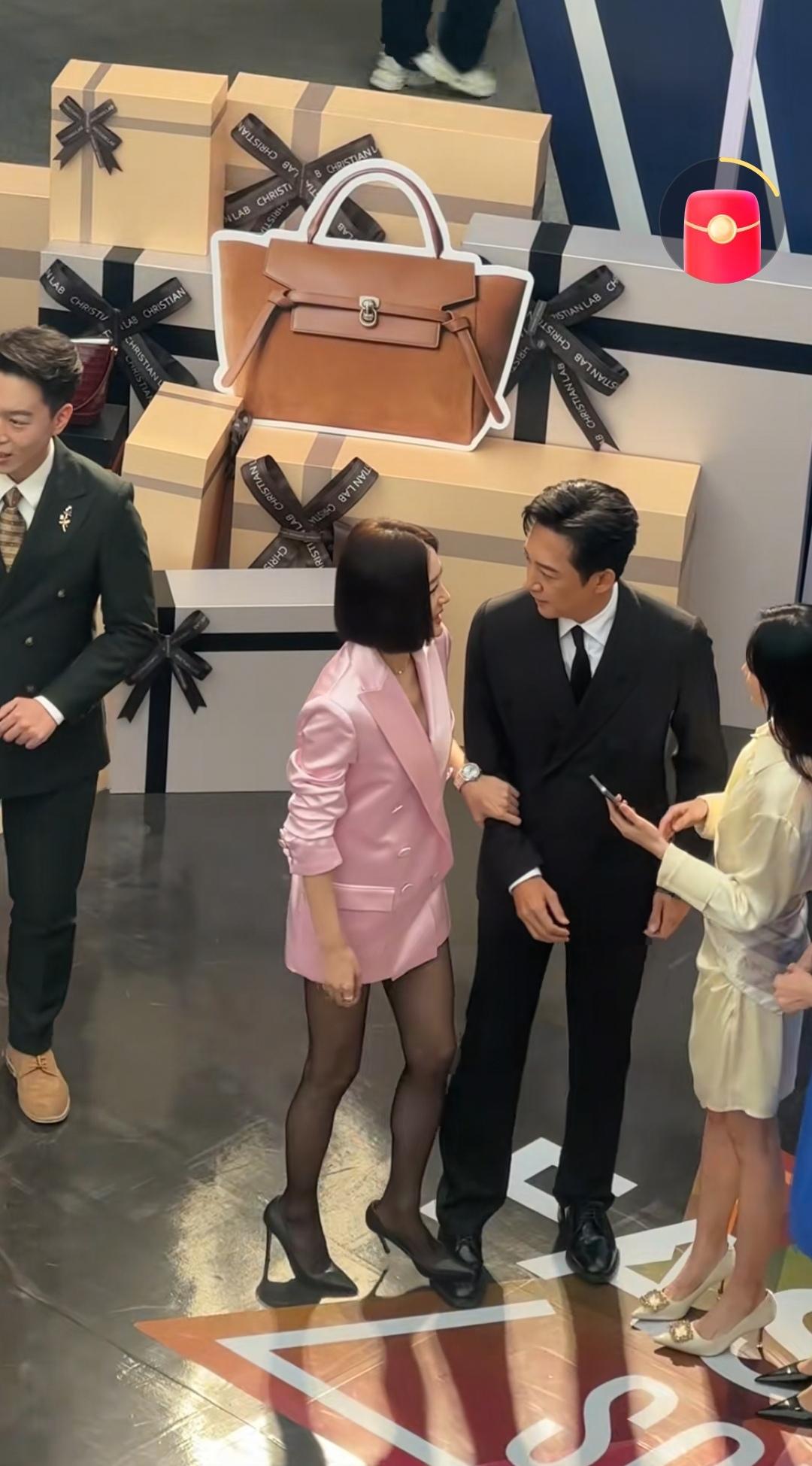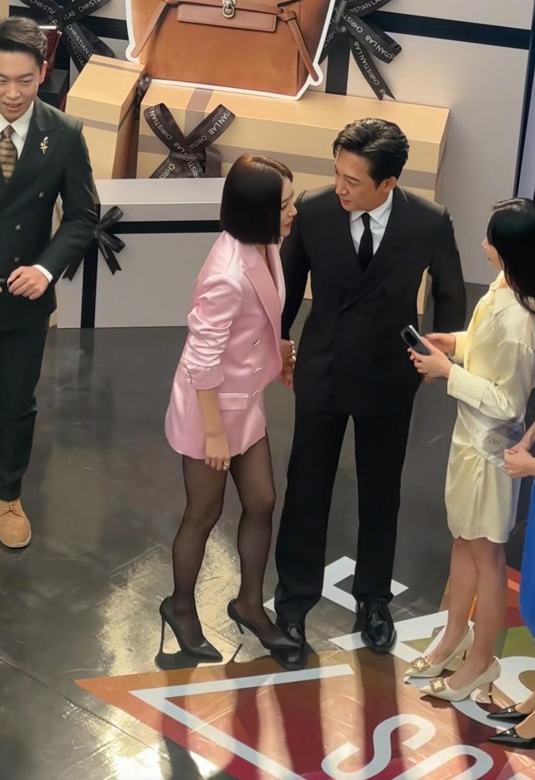 11月3日,在浙江一商场活动中,秦岚用黑色高跟鞋踩了王阳一脚,这种有趣的互动方式说明他们之间很熟悉,不会因为这种小小的举动产生矛盾,反而各自很开心。 宁波奥特莱斯商场请来了秦岚和王阳两位明星,秦岚穿着粉色大外套西装和蕾丝丝袜,大长腿配黑色高跟鞋很亮眼。王阳穿着一身黑色西装。 台上的一位女士走到王阳身边让他看手机的时候,王阳看了身边的秦岚一眼开始和这位女士解释的时候,秦岚直接湊过来,用左手抓住王阳的右胳膊,用左脚脚高跟鞋踩着王阳的右脚,并开心的互动,王阳也没有生气,而是耐心的听左右两边的女士们说话。