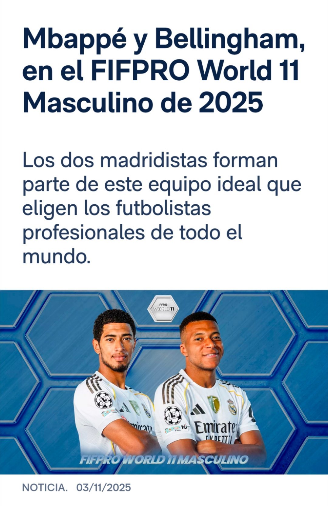 贝林厄姆入选2025年FIFPRO最佳阵容![送花花]