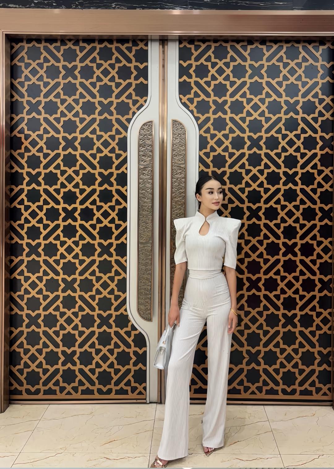 优雅气质,米色套装,时尚穿搭,精致妆容,魅力四射!