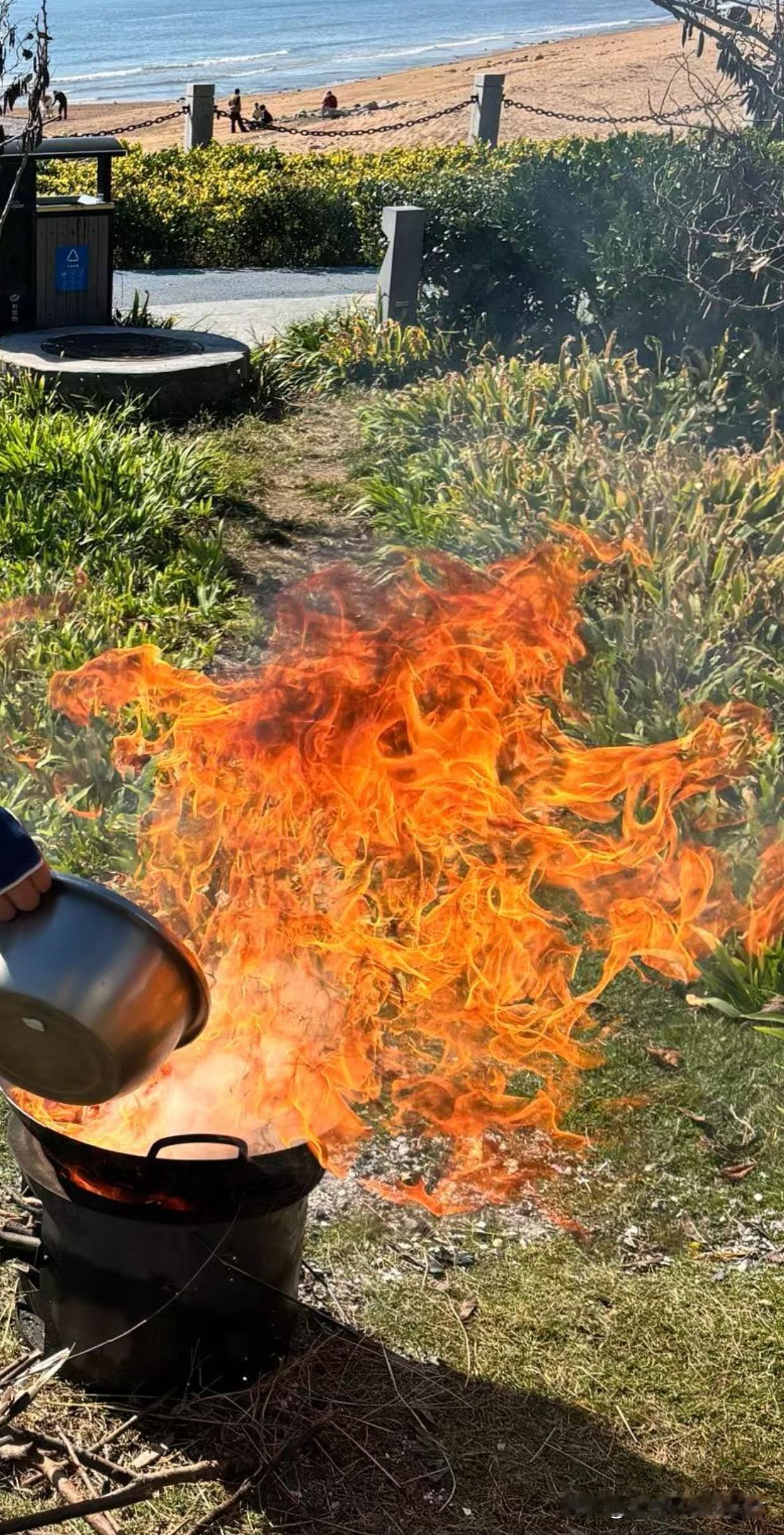 海边野餐,火焰熊熊,美味佳肴!🔥🍢🌊