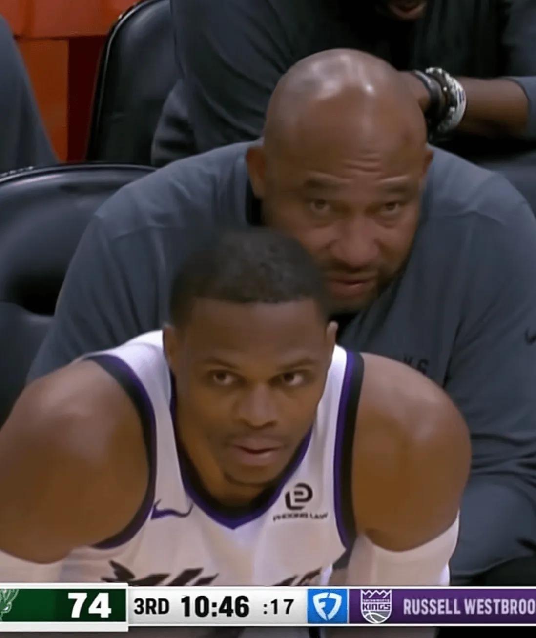 国王球员威少和雄鹿助教达尔文-哈姆合体了。美媒真是太有才了[赞],“两位湖人传奇同框了🔥”NBA World写道。威少应该恨哈姆吧,就是哈姆在位时,威少从主力变成了替补,哈姆这张嘴把威少忽悠的不要不要的!