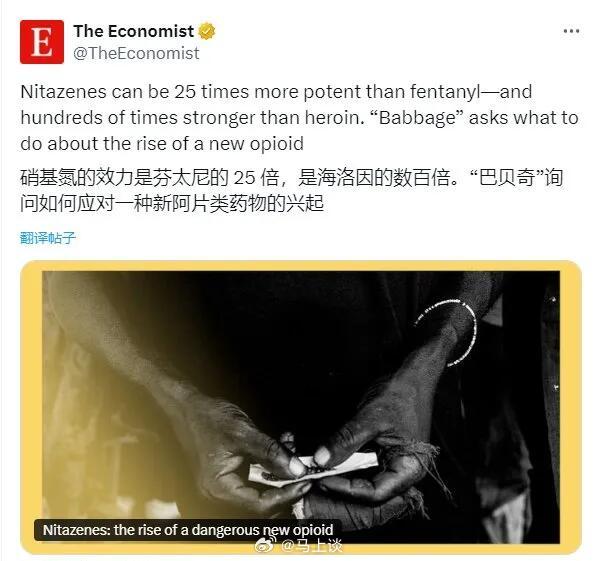 牢美太猛了,芬太尼已经满足不了他们了,居然捣鼓出一种叫硝基氮的东西,效力是芬太尼的25倍,是海洛因的数百倍…[裂开][裂开][裂开]