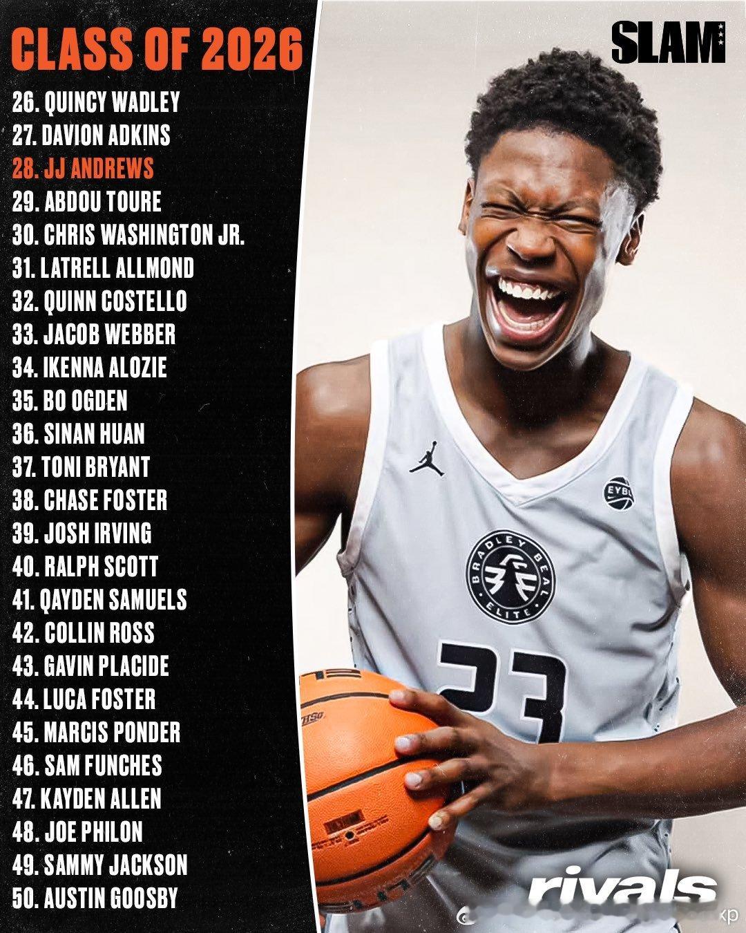 Rivals更新2026届全美高中生排名,郇斯楠排名36位郇斯楠ncaa中国球员NCAA[超话]中国男篮[超话]