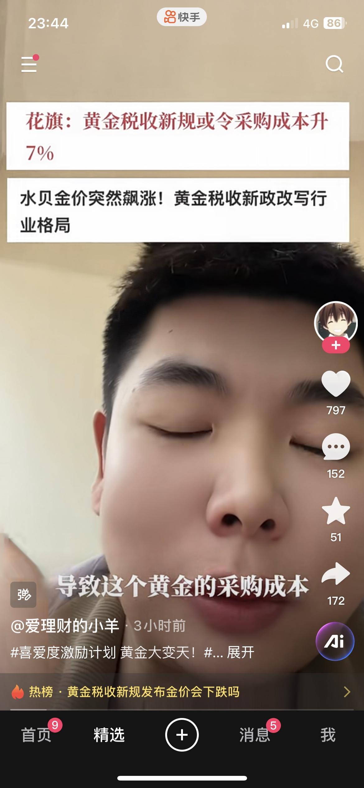 黄金税改突发:买金成本涨7%! 刚刷到个消息,黄金税收新规要来了!花旗说这波调整可能让采购成本涨7%,水贝金价都已经开始飘了。 这意味着咱们买金饰、囤金条都要多花钱了?你最近还会入手黄金吗? 手里有黄金投资的赶紧留意行情,想入手的建议先等等!转给买金的朋友提个醒! 黄金税改成本涨 水贝金价上涨黄金新政策 黄金增值税 黄金新规
