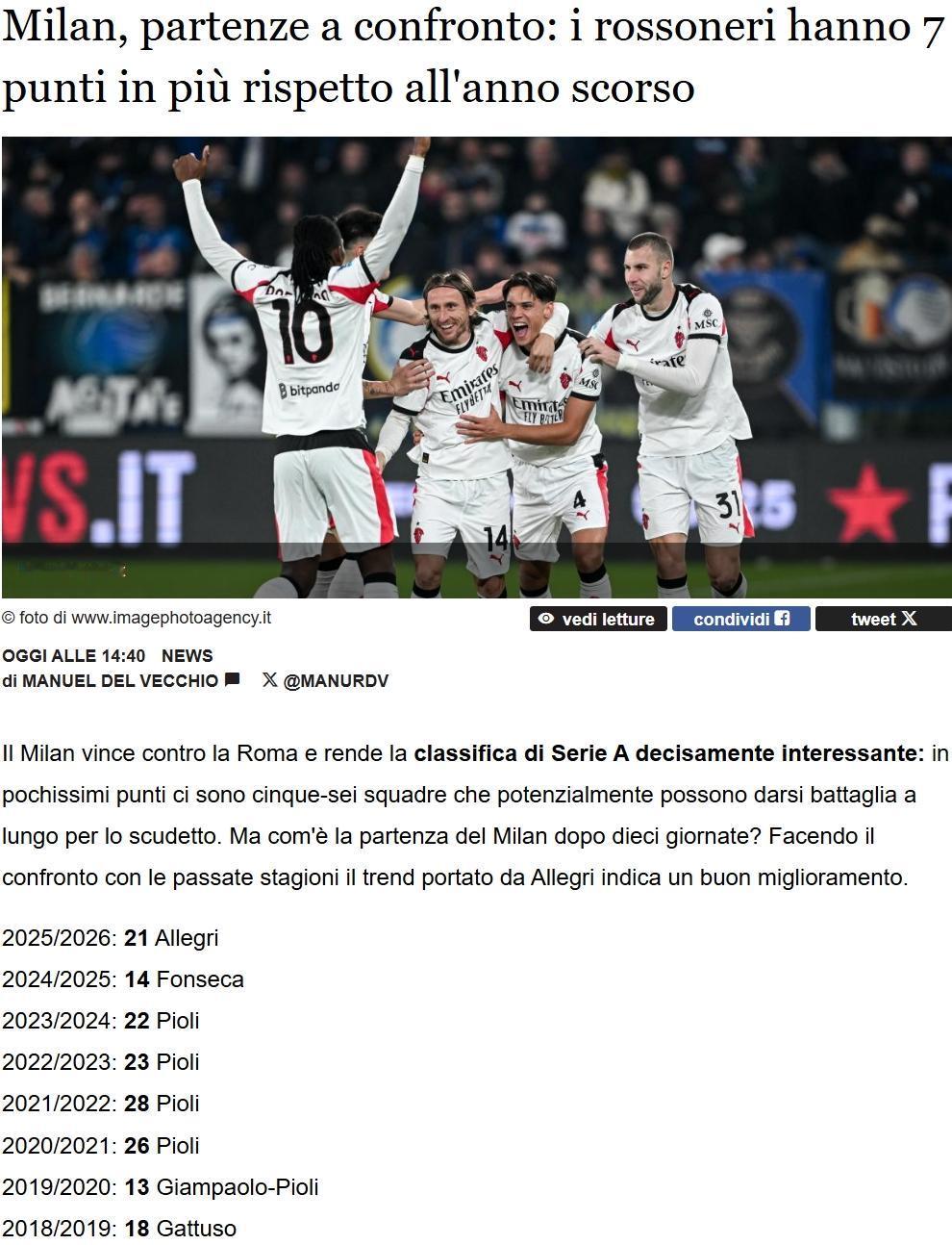 意大利媒体说AC米兰本赛季进步了。 目前21分和国际米兰一样,仅次于22分的那不勒斯,说不定能夺冠。 上赛季才14分。 2020赛季更少13分。 现在是意甲前三强的球队。 莫德里奇有可能拿意甲冠军![大金牙]