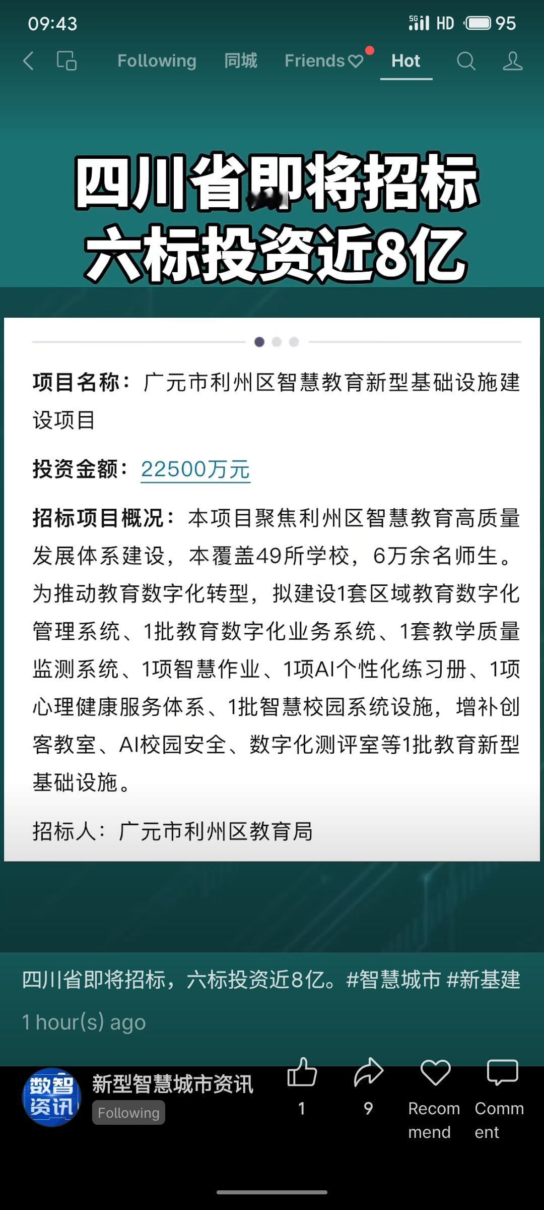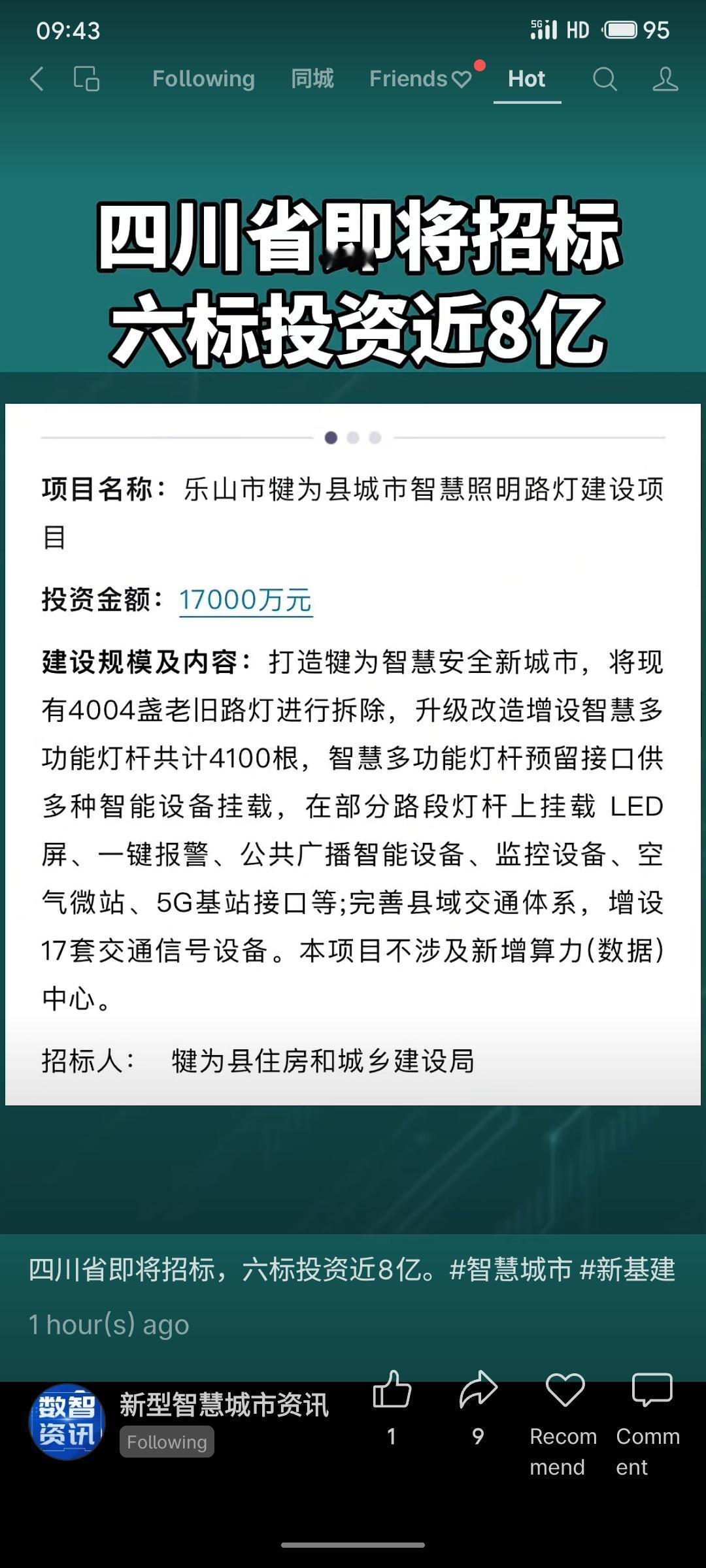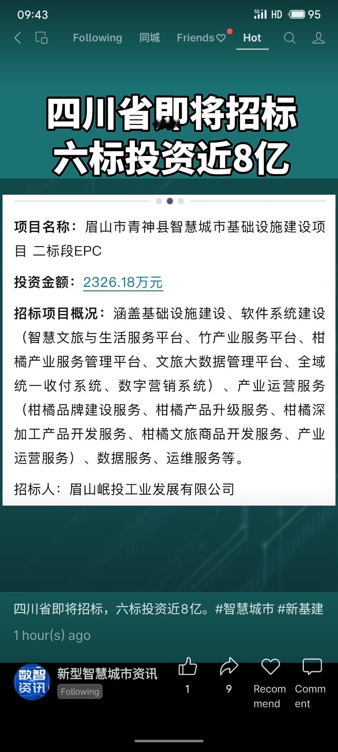 四川省近期将启动六个智慧城市相关项目公开招标,总投资额近8亿元。项目涵盖多个领域:眉山市青神县将建设智慧城市基础设施及产业服务平台;北川县聚焦智慧传媒与非遗文化数字化;绵阳科技城新区和广元市利州区均重点投入智慧教育体系建设;宜宾高新区致力于市政公共服务数字化;乐山市键为县则计划升级改造4100根智慧路灯。这些项目普遍强调不新增算力中心,注重现有设施升级与具体应用场景落地。 这批项目投资精准、覆盖面广,聚焦教育、文化、市政等民生领域,通过数字化赋能城市管理与公共服务,体现了务实推进新型智慧城市建设的导向。