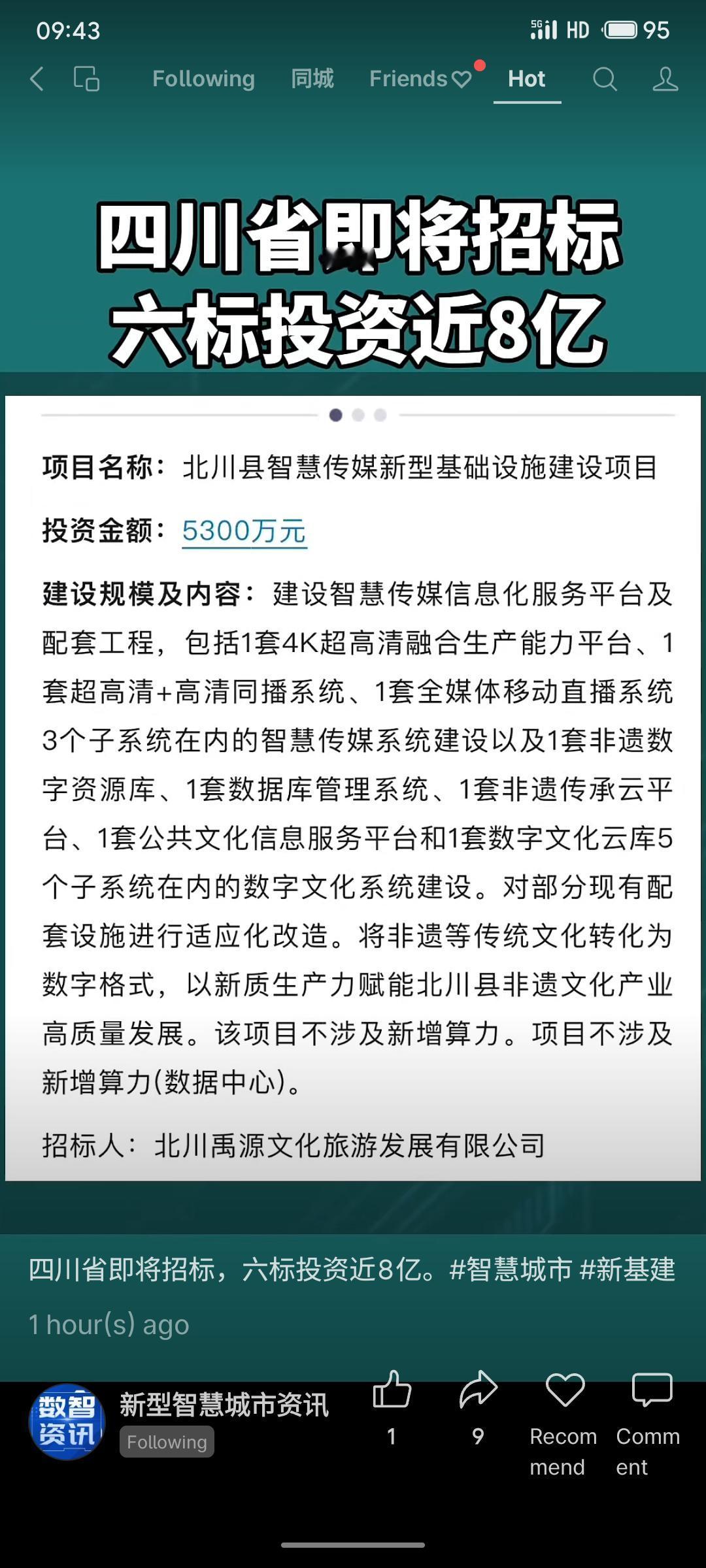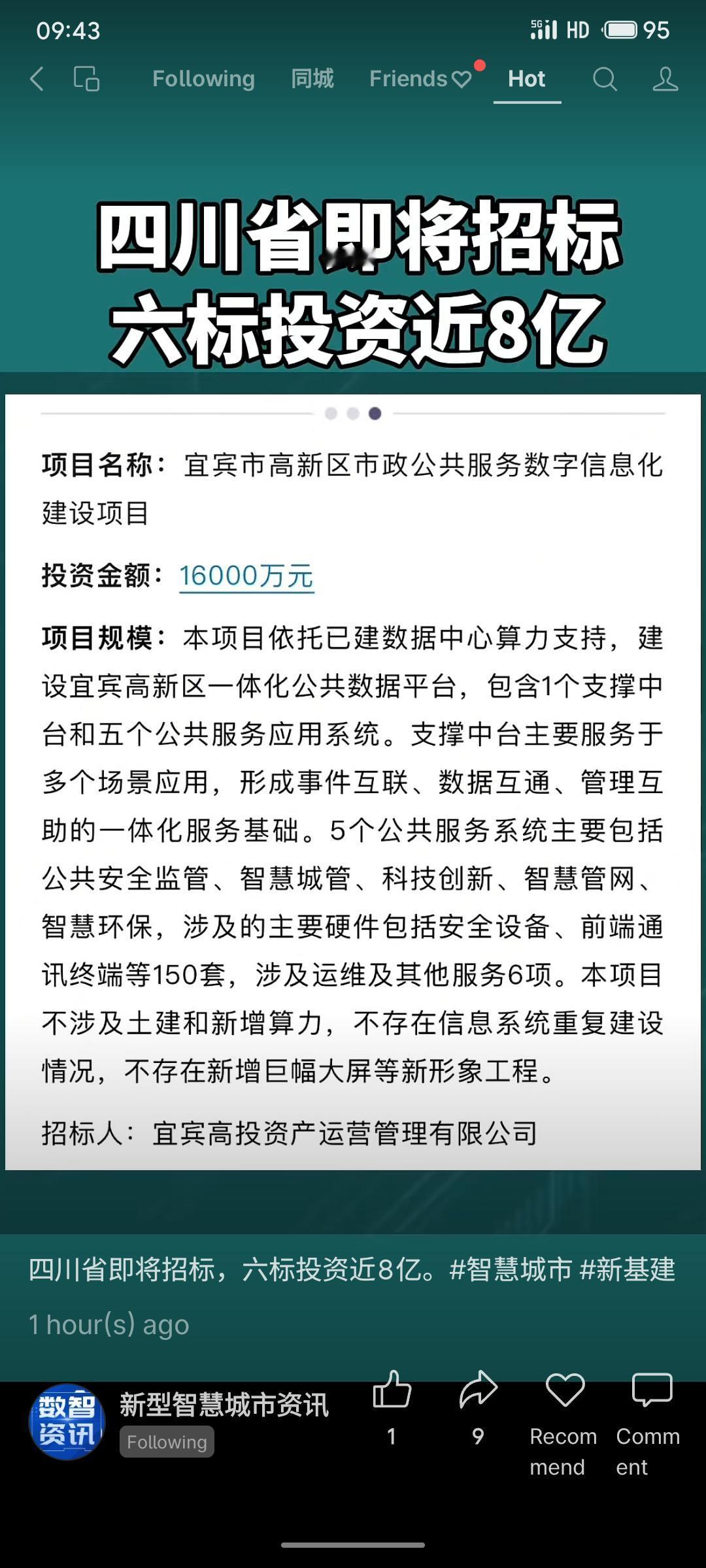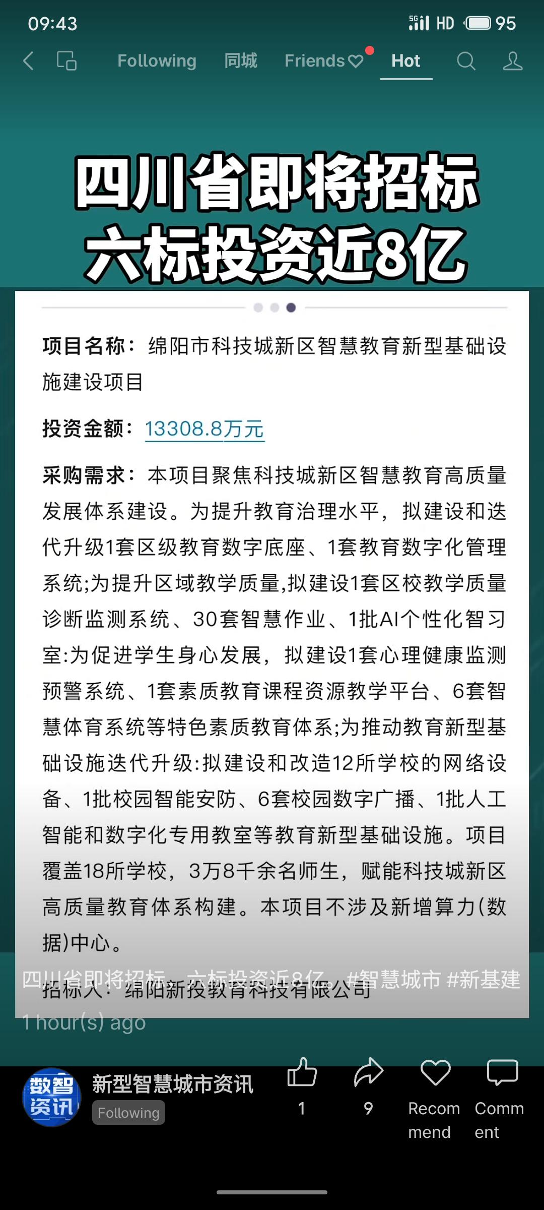 四川省近期将启动六个智慧城市相关项目公开招标,总投资额近8亿元。项目涵盖多个领域:眉山市青神县将建设智慧城市基础设施及产业服务平台;北川县聚焦智慧传媒与非遗文化数字化;绵阳科技城新区和广元市利州区均重点投入智慧教育体系建设;宜宾高新区致力于市政公共服务数字化;乐山市键为县则计划升级改造4100根智慧路灯。这些项目普遍强调不新增算力中心,注重现有设施升级与具体应用场景落地。 这批项目投资精准、覆盖面广,聚焦教育、文化、市政等民生领域,通过数字化赋能城市管理与公共服务,体现了务实推进新型智慧城市建设的导向。