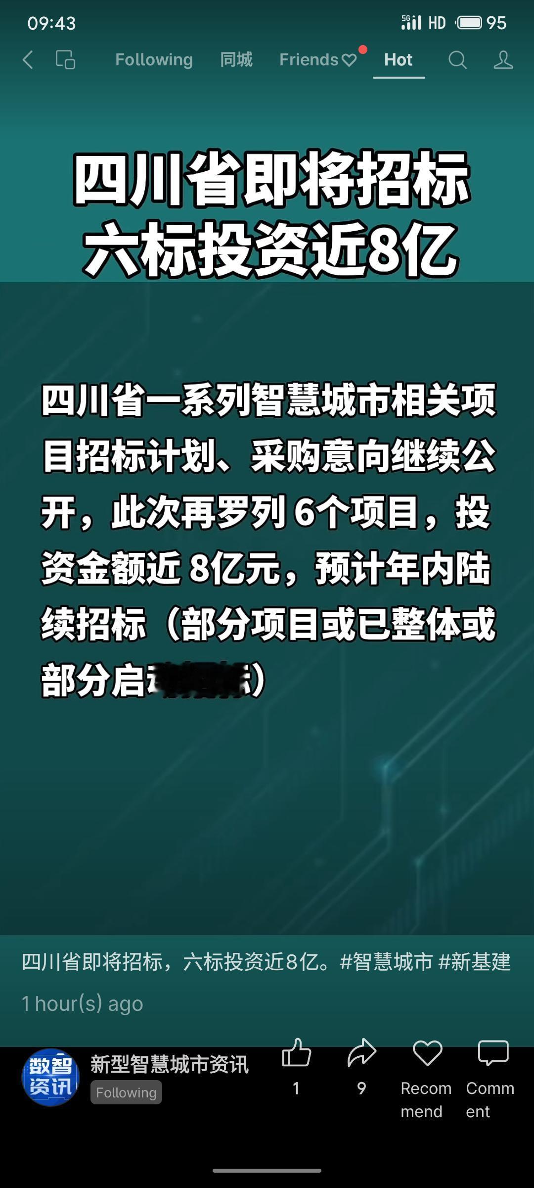 四川省近期将启动六个智慧城市相关项目公开招标,总投资额近8亿元。项目涵盖多个领域