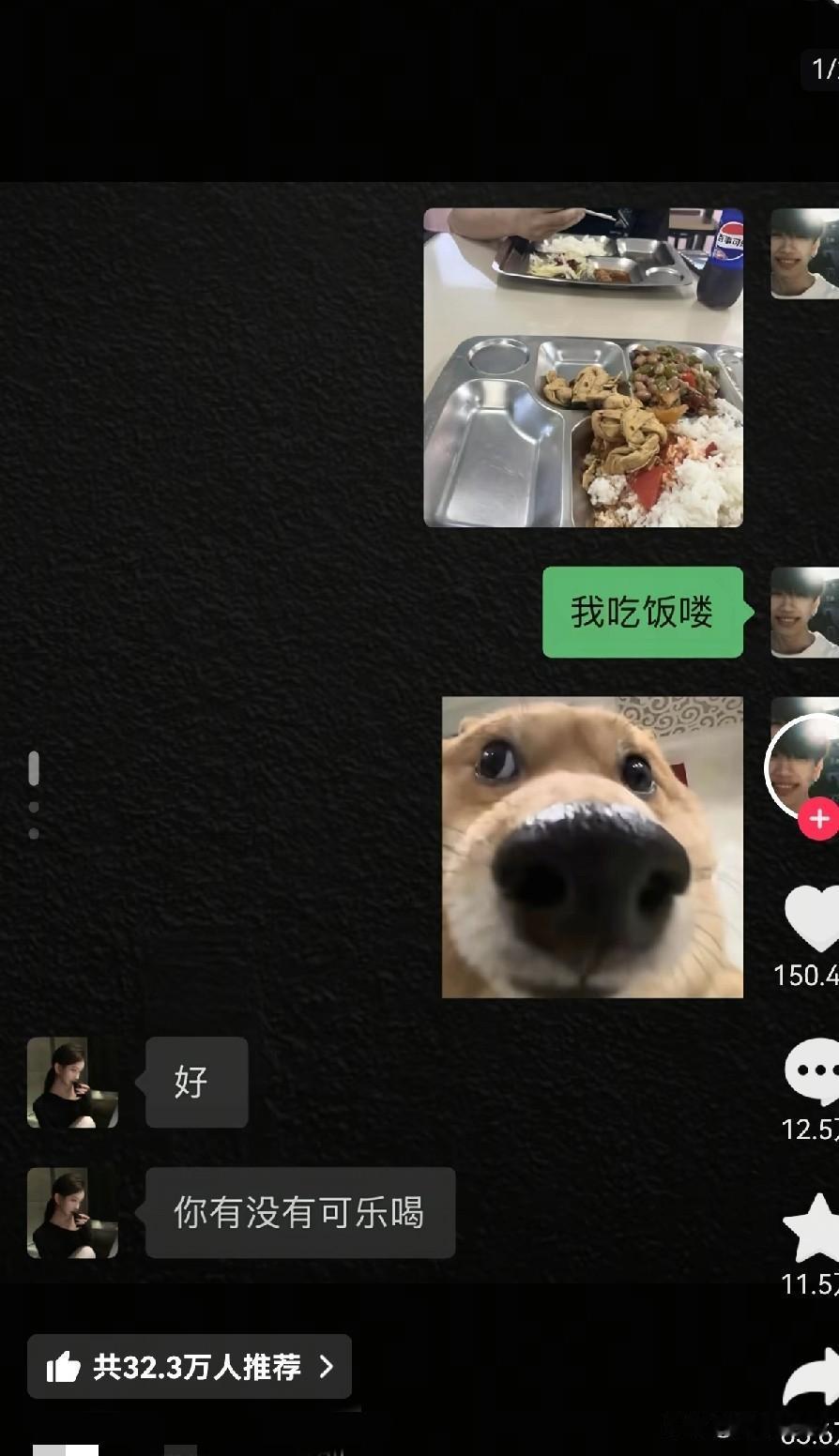 一句“你有没有可乐喝”让千万网友破防![流泪] 没想到一句简单的问候就获得150万的点赞量,可能很多人不明白,为什么会让全网的男生集体破防,那是因为你们根本不懂这6个字背后的含金量有多高。 11月2日,一个男生在食堂吃饭从餐具来看应该是工厂的大食堂,该男生吃的非常简单,他边吃边和对象聊天,女友问他吃的是什么菜,于是男生就随手拍了一张照片发给了女友,但照片的右上角不小心拍到对面有一瓶可乐。 而女生也非常细心也注意到了这一点,便关心的问了句“你有没有可乐喝?” 正是这一句简单的问候让全网男生集体破防了,可能大家不没理解为什么会有那么多人被感动。 其实并不是在可乐身上,而是背后的含义,是反映了社会中男性群体常常被忽视情感需求的现状。 在大家的认知里,男生通常被期望坚强、独立,很少有人会去关心他们内心的感受,而这句“有没有可乐喝”,则让男生们感受到了被理解和被关怀,所以能够引发他们强烈的情感共鸣。 而且也可以看出来这个女生是真的爱这个男生的,因为她点开图片仔细观看了,并没有随便的敷衍了事。 你们看把这个图一的大龄剩男生感动的痛哭流涕,可见此事的杀伤力有多大![捂脸]可乐