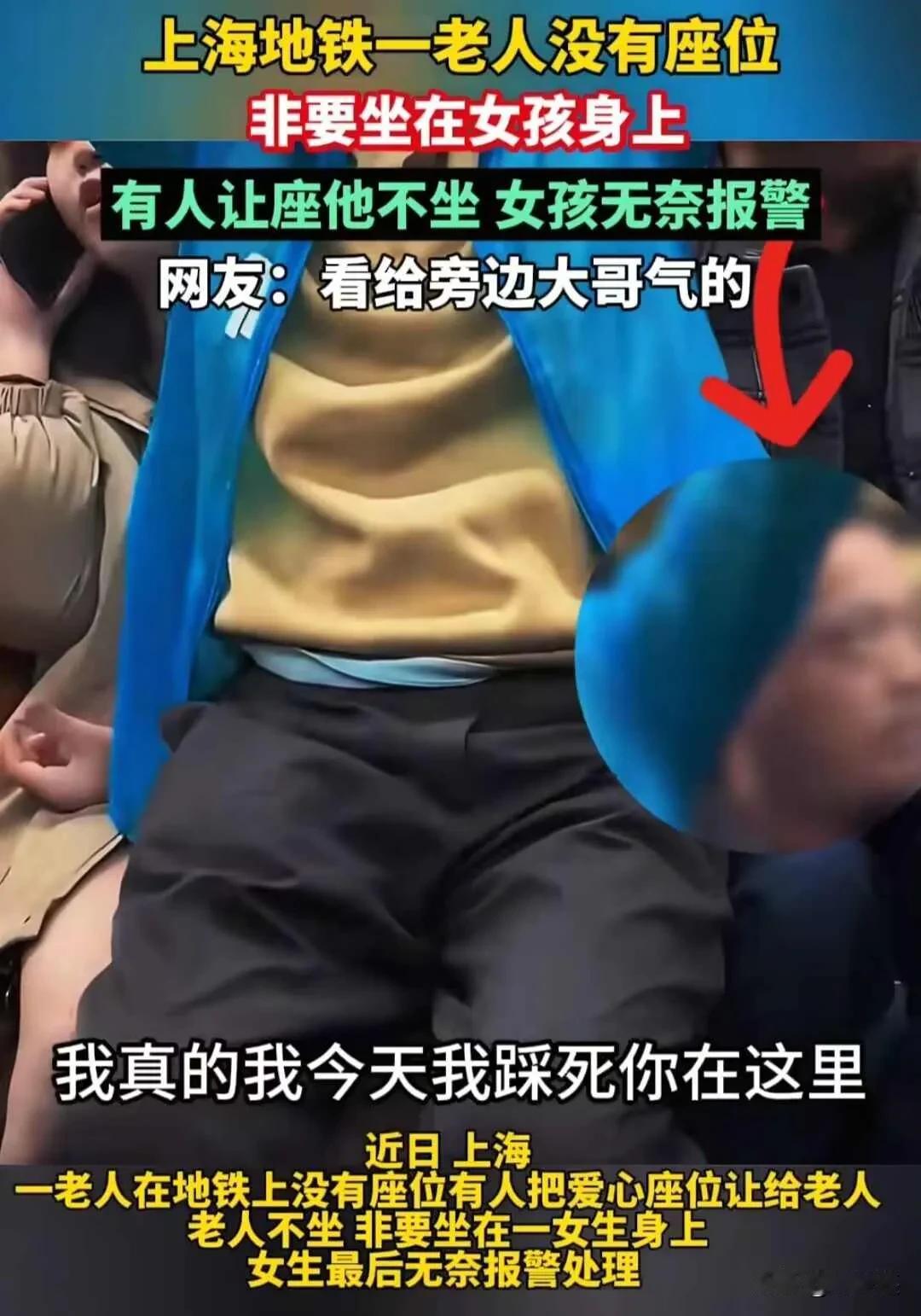 老人坐腿,地铁沉默,谁来管这“熟人社会”里的怪事? 那天晚上在上海地铁里,一个戴红帽穿蓝外套的老头,看起来七十多岁,明明有空座位却不去坐,反而直接往一位年轻姑娘腿上坐下,姑娘吓得往后躲还发出尖叫,老头却抓着她不放,脸上挂着让人发凉的笑容。 旁边有个中年男人看不过眼,站起来想拉开老头,可老头根本不理会,还继续压着姑娘,男人气得大喊真想踩他几脚,但也拿老头没办法,姑娘一边挣扎一边录视频,还报了警,老头看见镜头也不躲开,反而凑得更近,好像在说你拍吧我无所谓。 警察很快赶到现场,将老人带离车厢,但这件事的后续影响却持续扩散。网络舆论迅速发酵,部分网友批评老人行为失当,也有网民提及2021年上海地铁发生过类似事件——当时也有老年人故意坐在其他乘客腿上。这种重复出现的现象让公众认为并非偶然,而是存在某种故意性。同时引发社会对法律适用的讨论:七十岁以上人群是否能够免除法律责任,现行法律是否存在因年龄豁免处罚的规定。 律师们对此意见不一,有人认为这种行为构成猥亵,可以处以五到十天的拘留,也有人主张应定性为寻衅滋事,最高可拘留十五天并处罚款,但问题在于老人年纪较大,执法时需要考虑实际情况,北京、广州、武汉都出现过类似事件,有的老人因骂人不让座受到处理,有的紧贴女学生或直接动手触摸他人,最终结果却各不相同,有的被拘留,有的未受处罚,执法尺度存在明显差异。 上海地铁回应称已记录并会调查此事,这个说法听起来像套话,没有提到处理方式或是否处罚,记者向警方电话询问时,接线员直接拒绝回应,公众因此更加担忧,连官方都保持沉默,这件事能否得到妥善解决。 其实地铁系统本来就有漏洞,安检主要用来防止爆炸和打架这类事情,对于那种不打不骂却让人难受的行为,根本没有任何准备,车厢里连一个一键报警的按钮都没有,乘客只能自己喊叫、录像或者用手机报警,遇到年纪大的施害者,工作人员也不知道该不该阻拦、怎么去拦,担心惹上麻烦,干脆装作没看见。 这件事背后还有文化因素在起作用,很多人习惯性地认为应该让着老年人,就算对方做得不对,也常常想着“算了,别去计较”,可是这次那位姑娘没有忍让,那个中年男人也没有退缩,说明并不是每个人都愿意默不作声,但问题在于,站出来的人反而处境更困难,中年男人明明已经帮了忙,可那位老人还是不肯离开,最后连中年男人自己也没办法处理这个局面。 这件事在社交媒体上传开,影响就变大了,不是因为事情有多严重,而是因为太典型,它戳中大家心里的不安——老人不一定都善良,年轻人也不一定总要让步,代际之间的信任,正被这样的小事一点点消耗,你让座,他占座,你帮忙,对方反倒赖上,没人教他们把握分寸,也没人阻止他们越过界限。 现在很多地方都在推动公共交通安全升级,比如增加摄像头和安装智能系统,但这些措施大多只关注像抢劫、纵火这样的大案子,很少有人想到,那些车厢里每天发生的小骚扰才是乘客真正面临的困扰,法律上虽然可以用《治安管理处罚法》来处理,但具体到老年人身上,执行起来总是犹豫不决,各地没有统一标准,全靠值班民警自己判断。 说实在的,这事没什么稀奇,它只是被人拍下来传出去了,类似情况可能天天在不同城市的地铁里发生,只是没人录像没人发出来,大家也就装作看不见,可一旦曝光出来,人们才意识到,“尊老”这两个字早就被某些人当作借口了,那些人不是年纪大,是心地坏,这种坏让人说不出话,也叫人觉得无奈。 地铁属于公共空间,不是私人客厅,任何人都不能随便坐到别人腿上,不管这个人年纪多大,规则需要大家遵守,而不是只约束守规矩的人,对于那些利用“老人”身份违反规则的人,更需要严格管理。地铁 地铁那些老人 地铁老人 地铁大爷