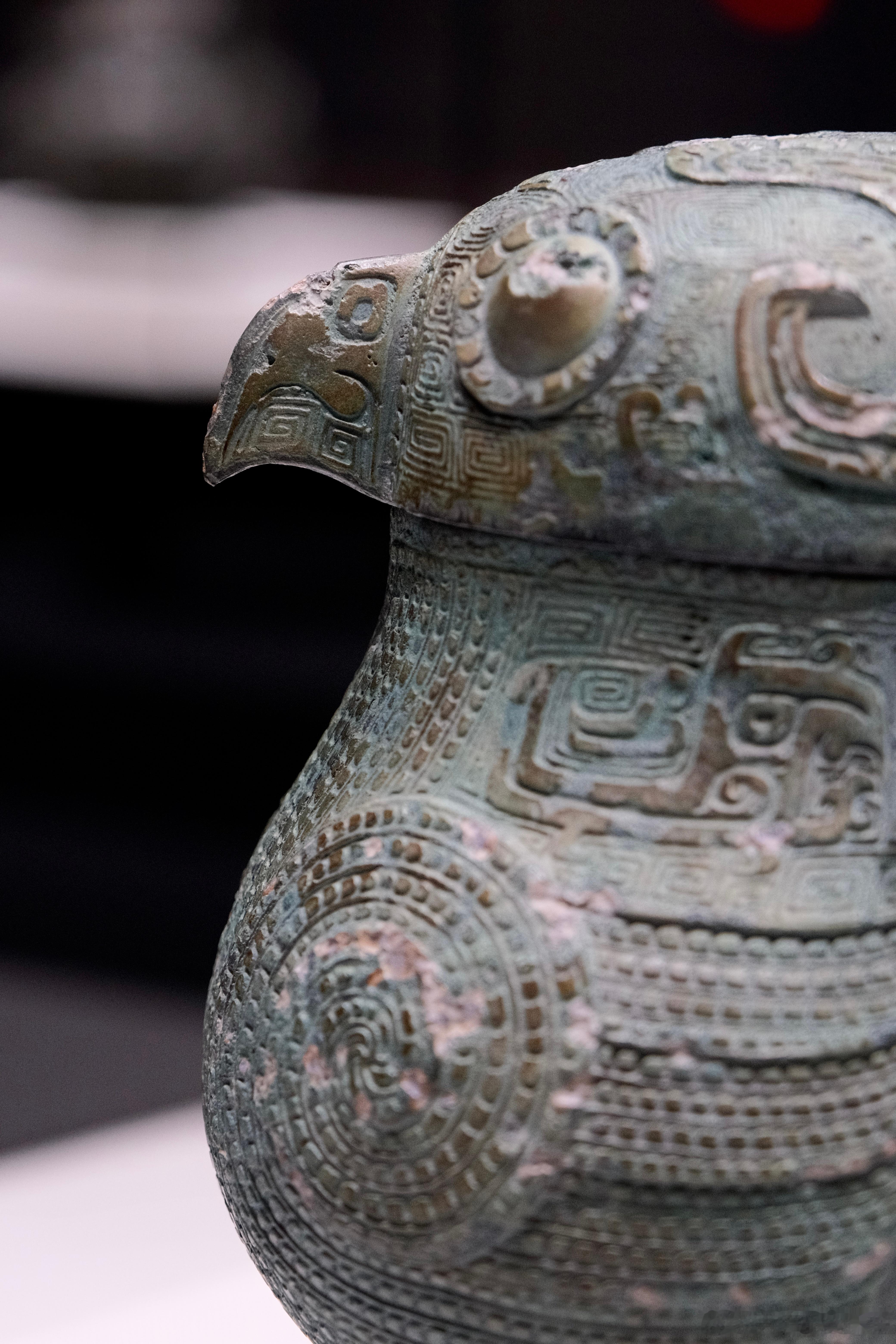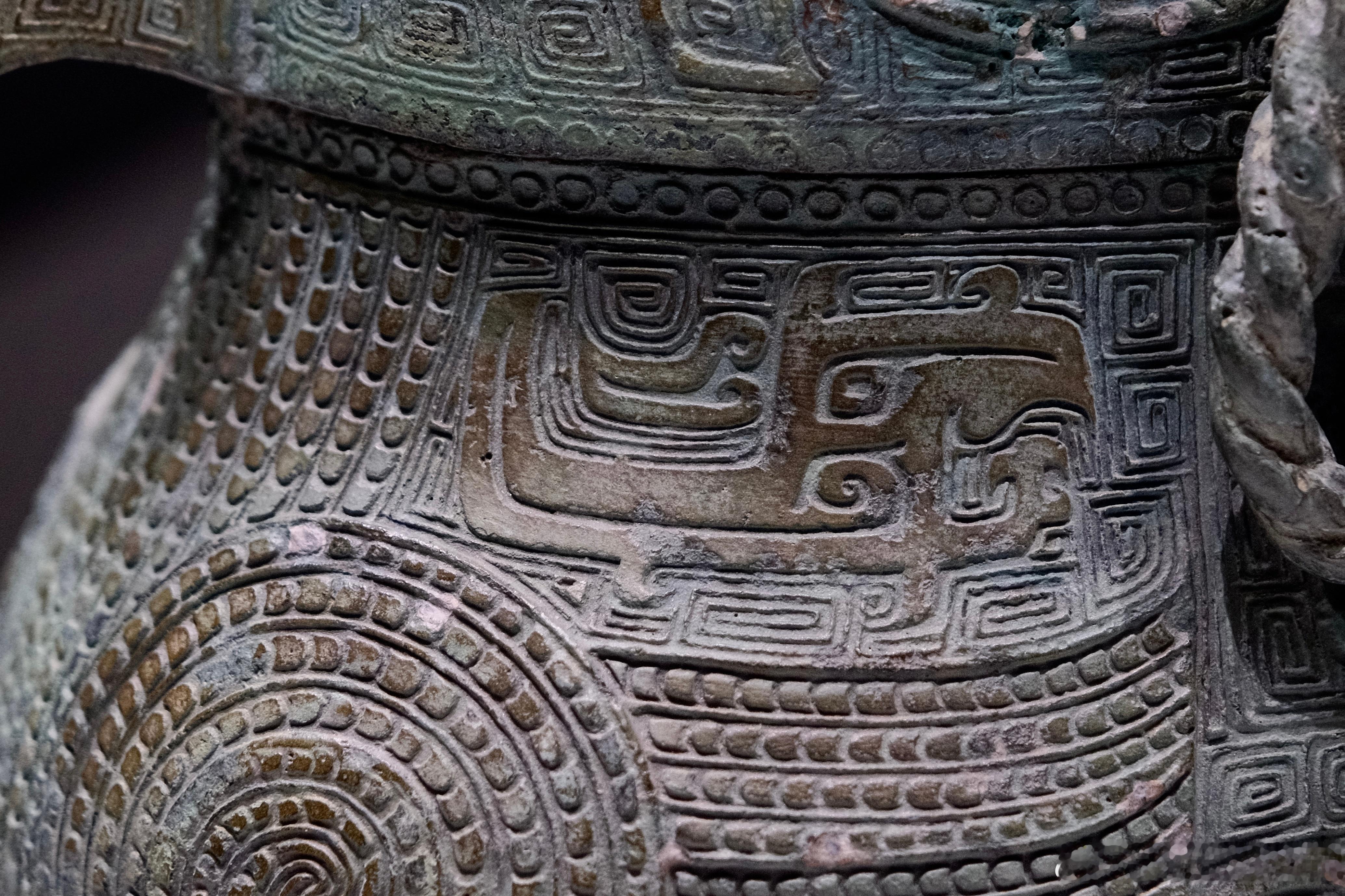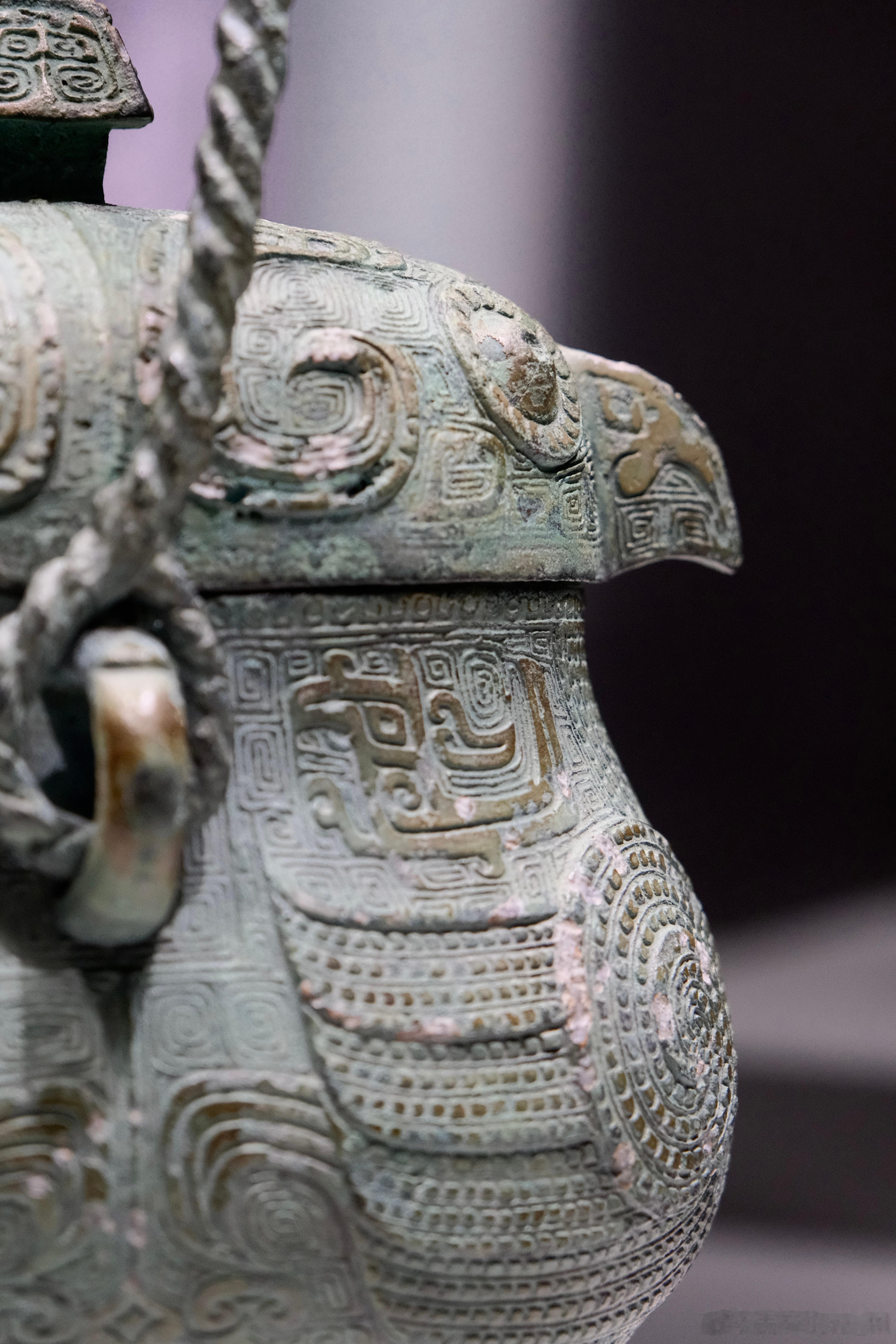 通体纹饰精美,融线雕、平雕、凸雕于一体,装饰有鳞甲型羽纹、夔龙纹、饕餮纹和鸟纹等。
