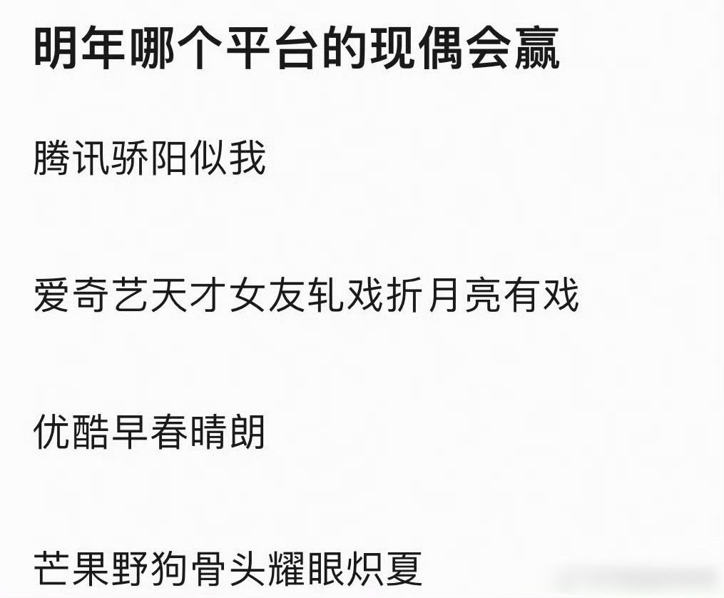 腾讯骄阳似我爱奇艺天才女友轧戏折月亮有戏优酷早春晴朗芒果野狗骨头耀眼炽夏哪个平台