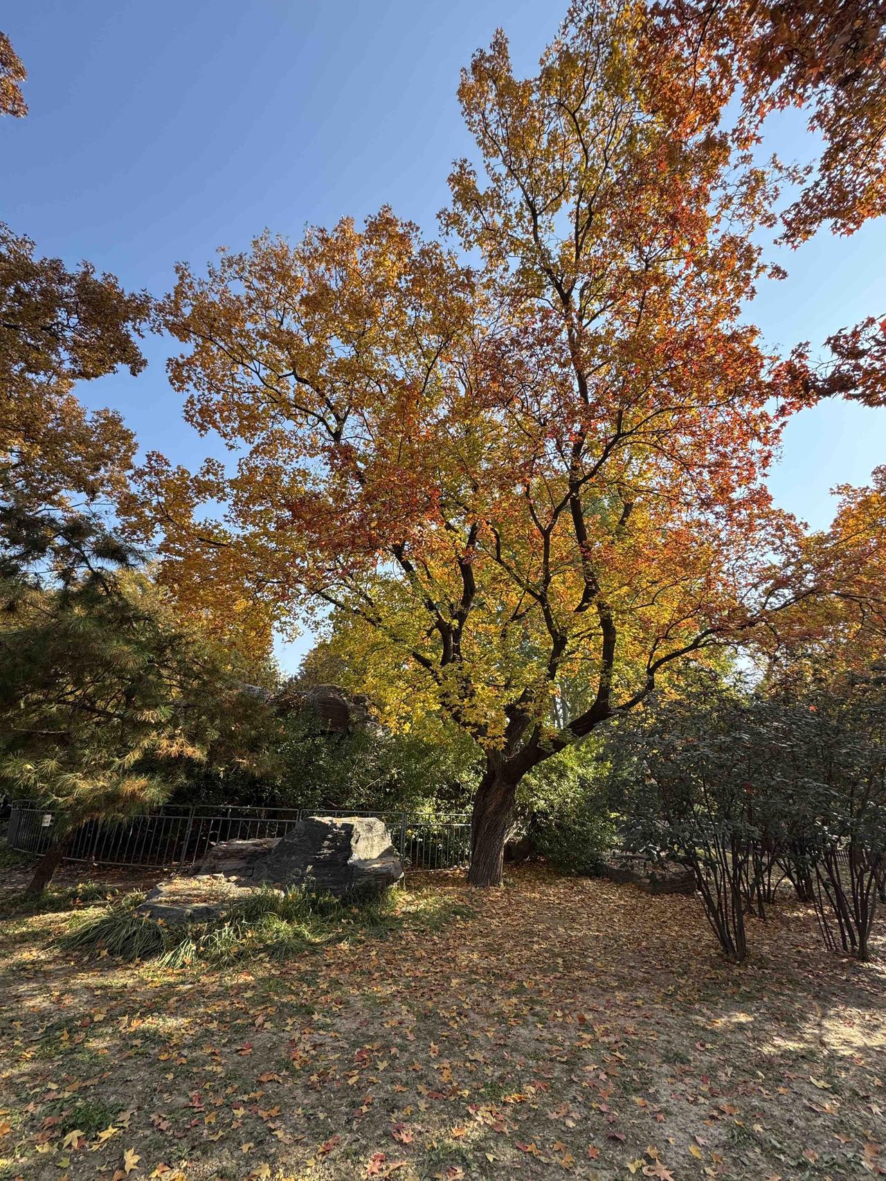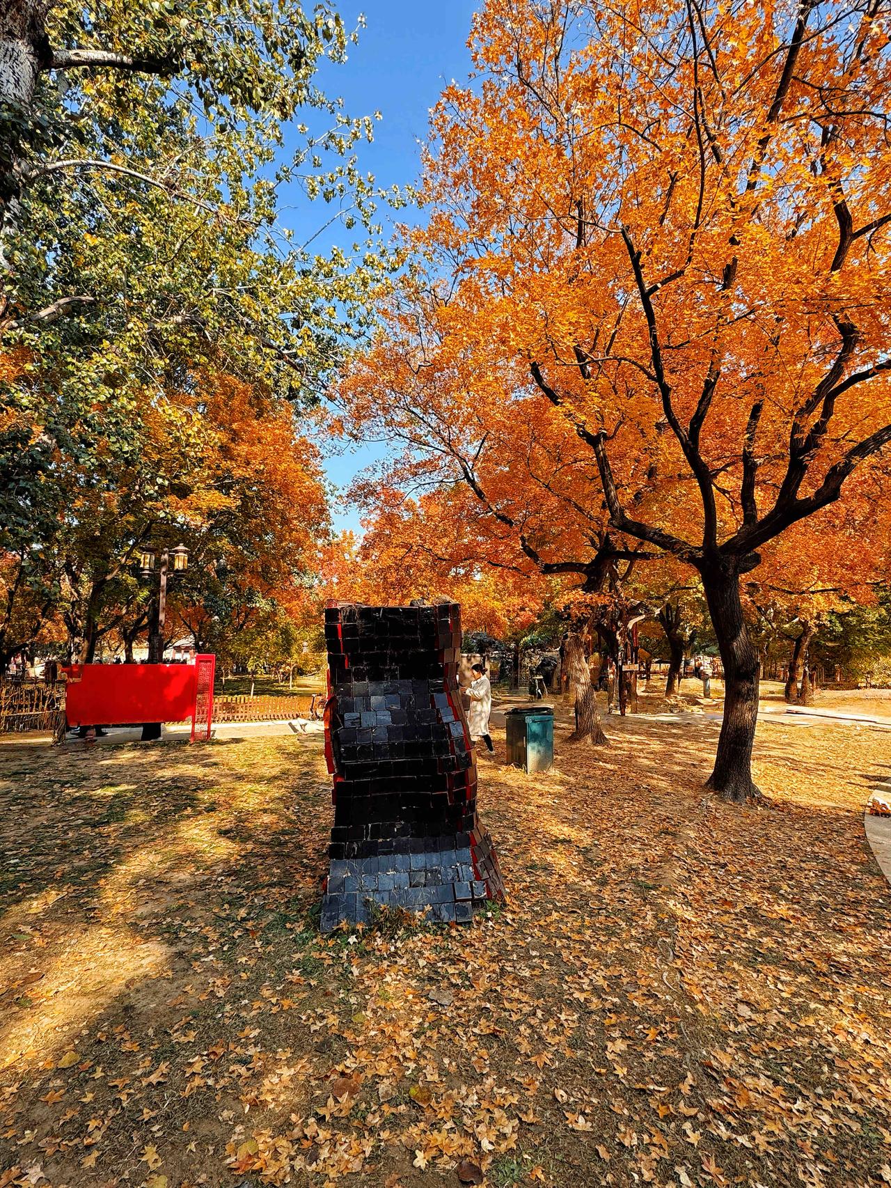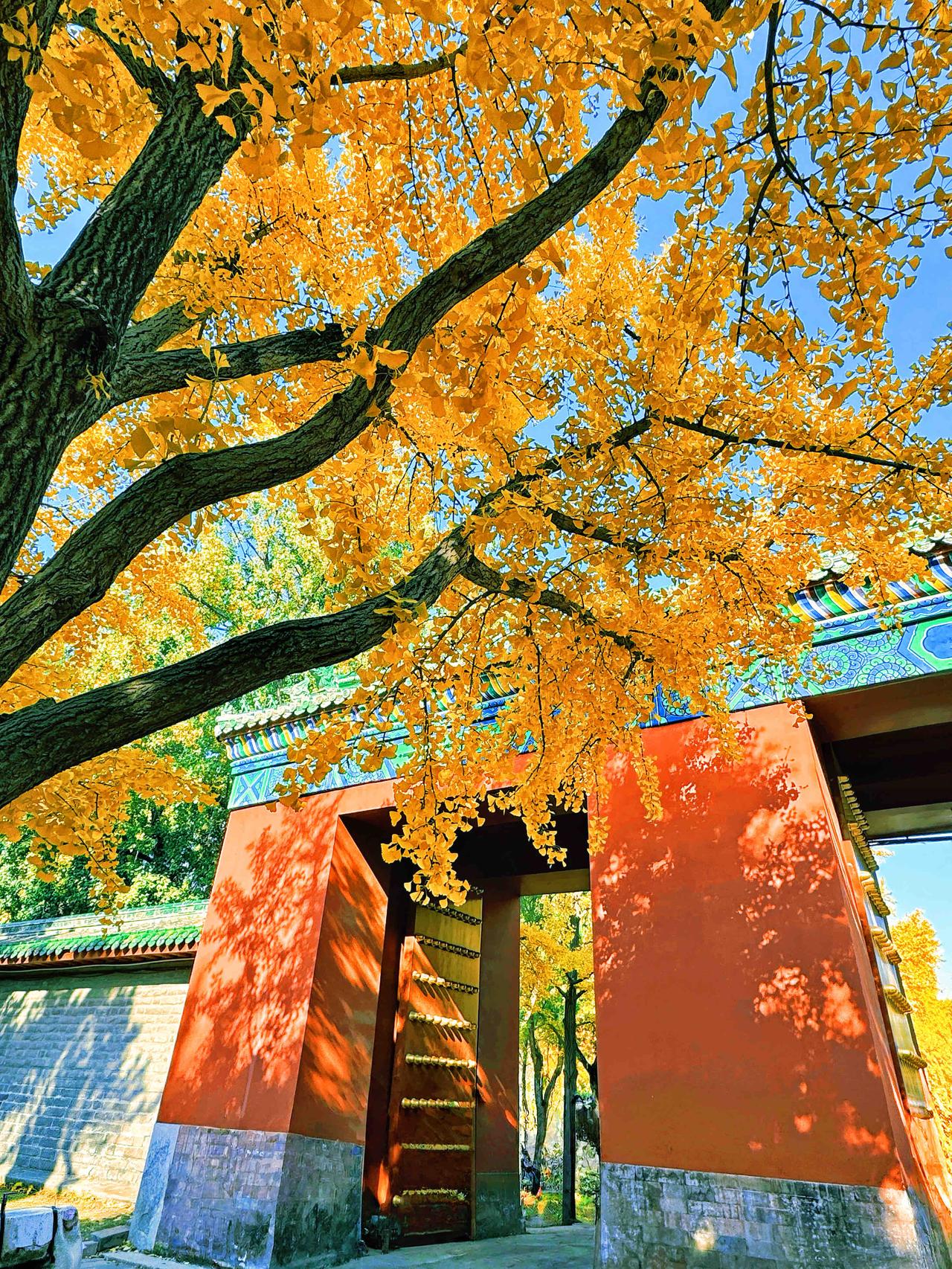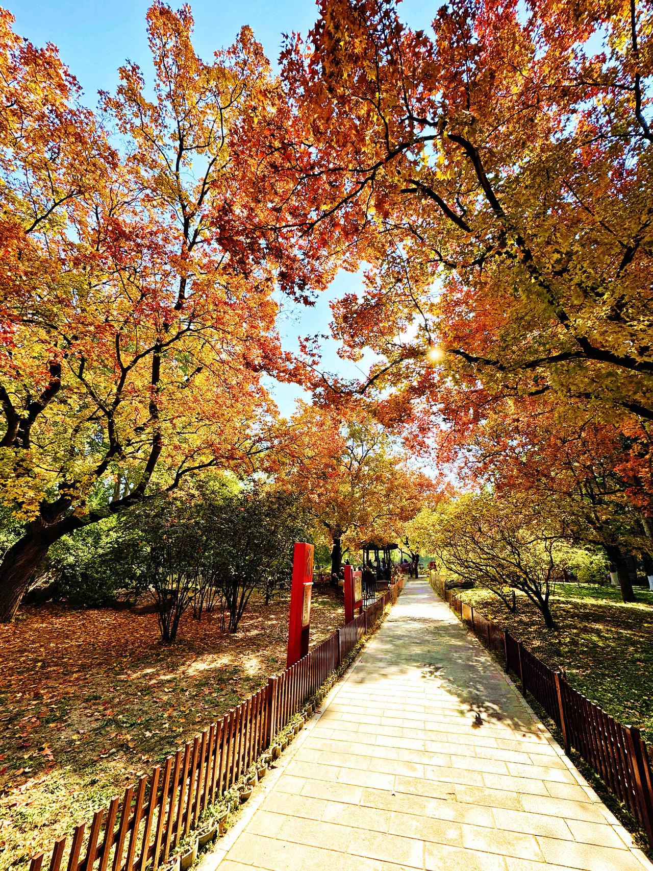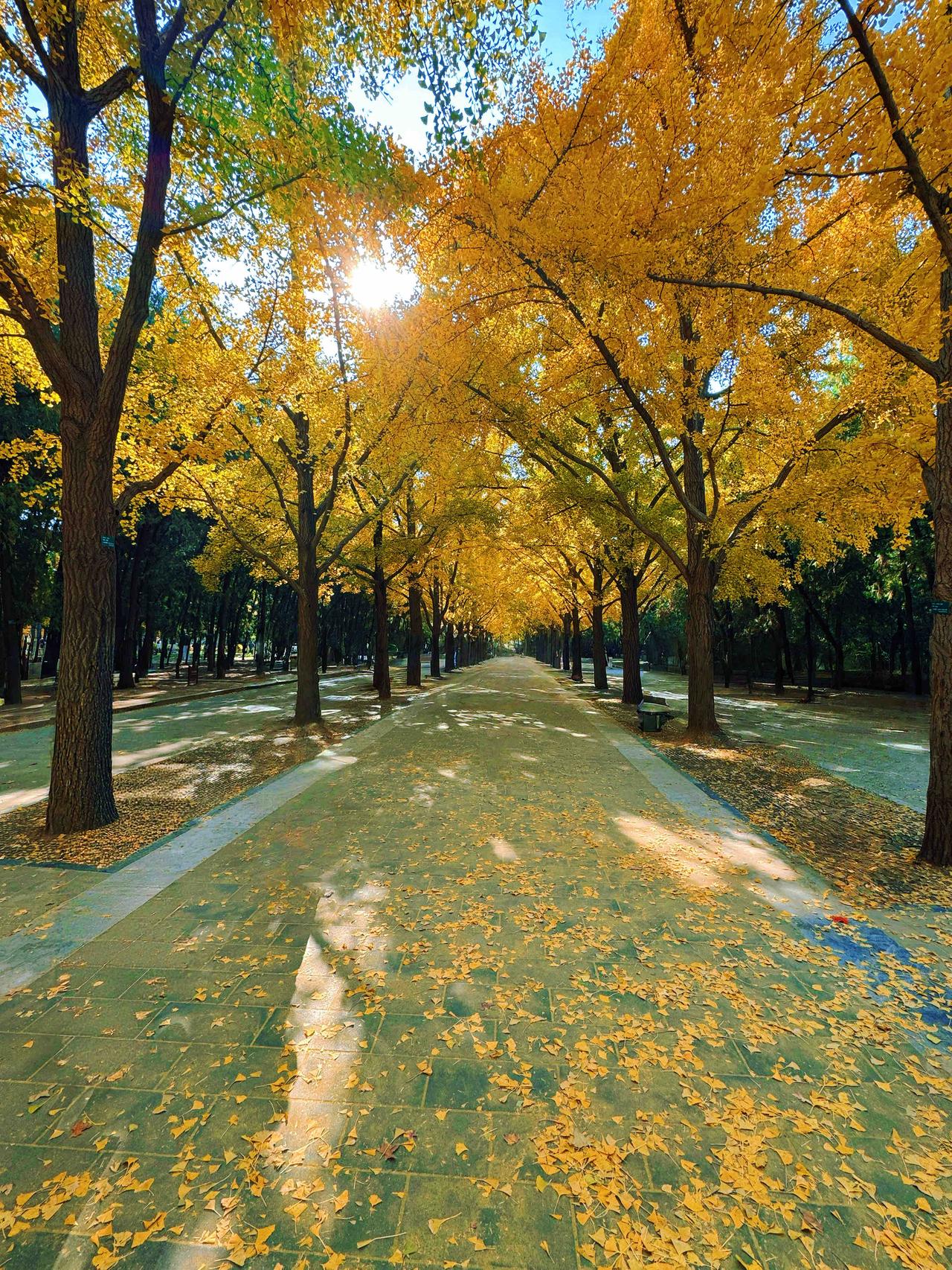 传说中的地坛银杏大道,我是用AI把所有的人都P掉了,真实场景是大道上全是人,看不见道路的,哈哈。当然确实很美,记住是地坛北门,我们通常吃金鼎轩的那个停车场已经无法停车了,而且金鼎轩这个南门里面什么也没有,所有美景都在北门。