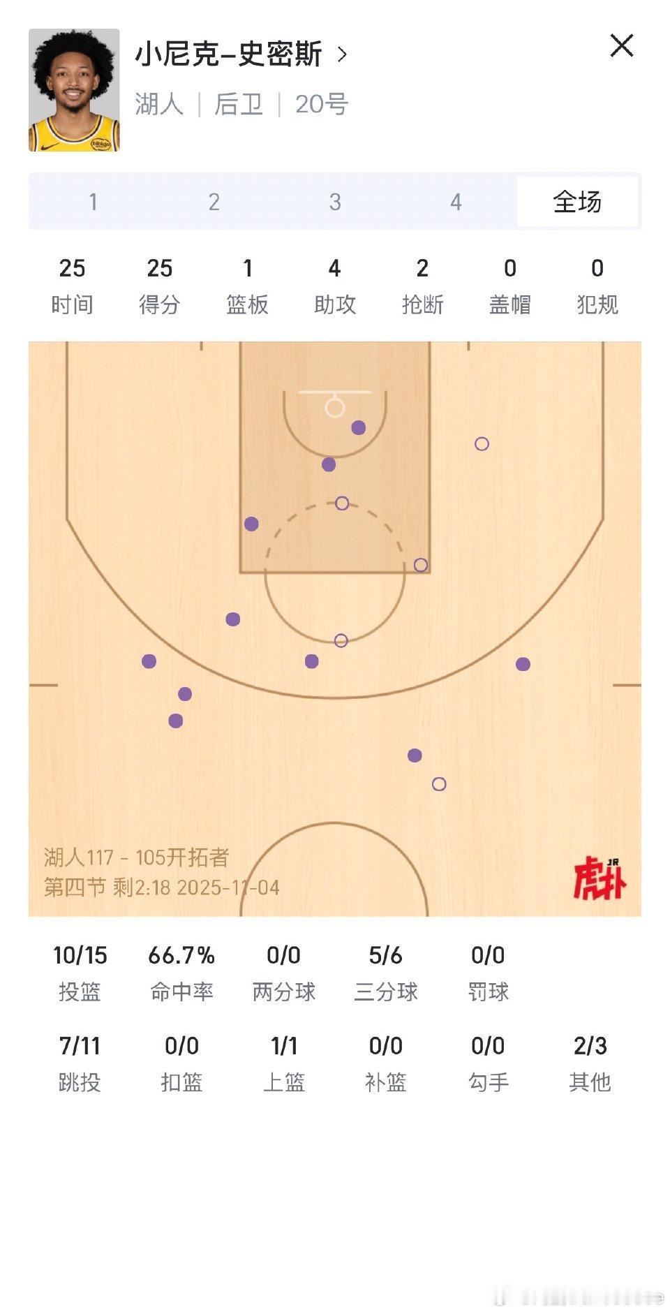 湖人这几场比赛真的场场有惊喜!赛前预测胜率仅23.8%。这场当然是小尼克史密斯,已经25分了。 看来湖人要大出血了,里夫斯得加钱续约,拉拉维亚得加钱续约,史密斯得给个正式合同…… 杀死比赛,史密斯助飞艾顿,湖人赢了。