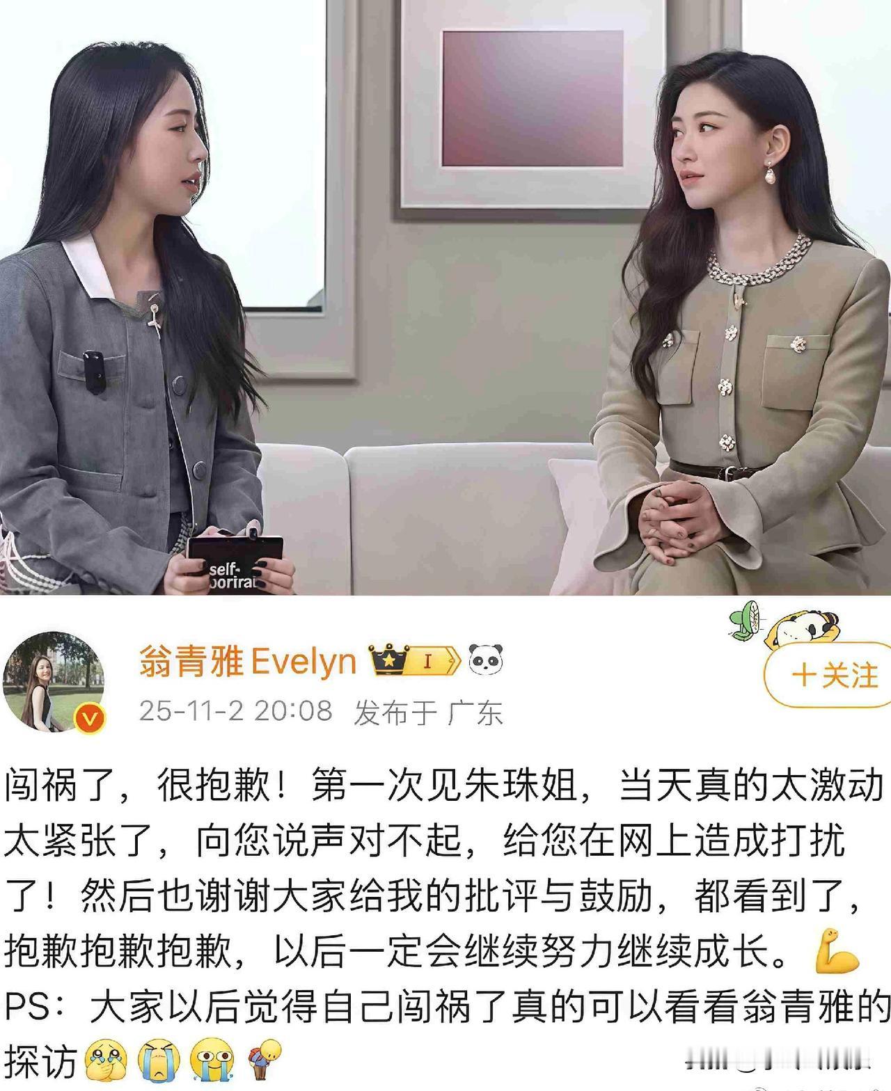 翁青雅这波操作妥妥的小太妹 家境不错送出国混了文凭, 回国就扎进娱乐圈。先上恋爱综艺装小白花,不喜欢男嘉宾却吊着人家,没半点真诚。 好不容易有了点知名度,转型当主持人却彻底翻车,去明星家采访,进门径直往前走,把开门的主人晾在一边,基本礼貌都没有,串词磕磕巴巴,完全胜任不了主持人工作,妥妥的资源咖配草包实力。 朱珠虽然是大明星,曾经也做过双语主持,不管是待人接物都得体自信,专业又敬业,魅力十足。这对比差距也太大了! 难怪董明珠不招留学生,翁青雅这表现确实拉低观感。你觉得资源咖没实力能走长远吗?