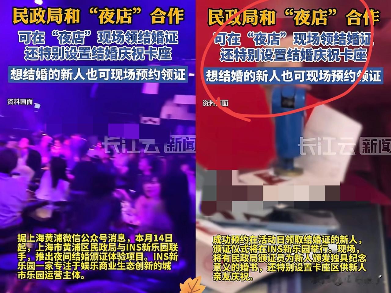 一觉醒来, 上海的丈母娘要慌了, 因为女儿可能在夜店就把自己给嫁了 黄埔区民政局这次玩出了新花样,11月14日到22日,结婚登记处直接搬进夜店,还特意开通夜间办公! 别担心年轻人一时头脑发热,现场有工作人员严把关,专门确认新人是不是在清醒状态下做的决定,浪漫和严谨直接拉满! 网上调侃丈母娘得赶紧藏户口本,我却觉得这波创新戳中了年轻人的心! 婚姻从来不是只有冷冰冰的流程,在热闹鲜活的氛围里定格幸福,反而给爱情加了份独家记忆点! 成年人的选择,从来不是“冲动”就能概括的,那些本就认定彼此的人,不过是借这份新潮,给爱情一个更特别的开始! 说不定以后商场、景区里办登记会成常态,本质上都是让婚姻更贴近年轻人的生活! 大家赞成这种做法吗?