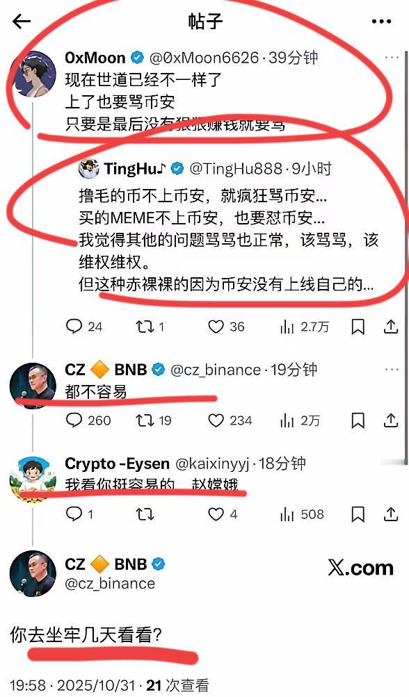 网友感叹,这个世道变了~ 上了平台,只要没狠狠地赚到钱,还是要骂平台~还不要说那些没上平台的了!! 有人说,这就过分了吧~ 没想到的是,币安创始人赵长鹏亲自下场回应了,他说,都不容易!! 一个网友怒怼他,我看你挺容易的! 赵首富非常不爽,悻悻地回怼,你去坐几天牢房试试?? 哈哈哈哈,赵总一把就被美帝收割了500亿,心都在滴血啊,你还说他容易?
