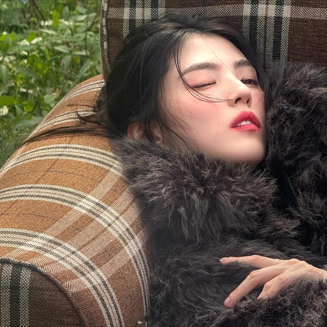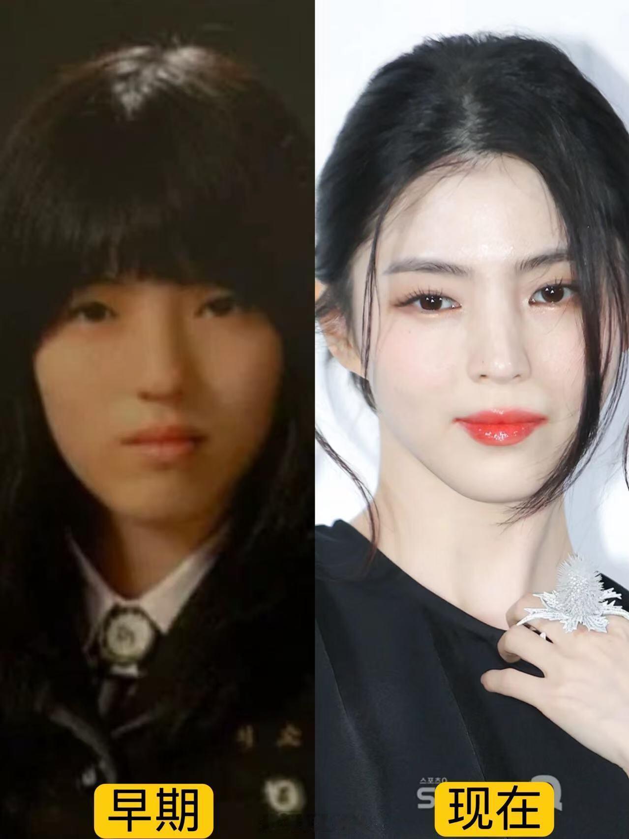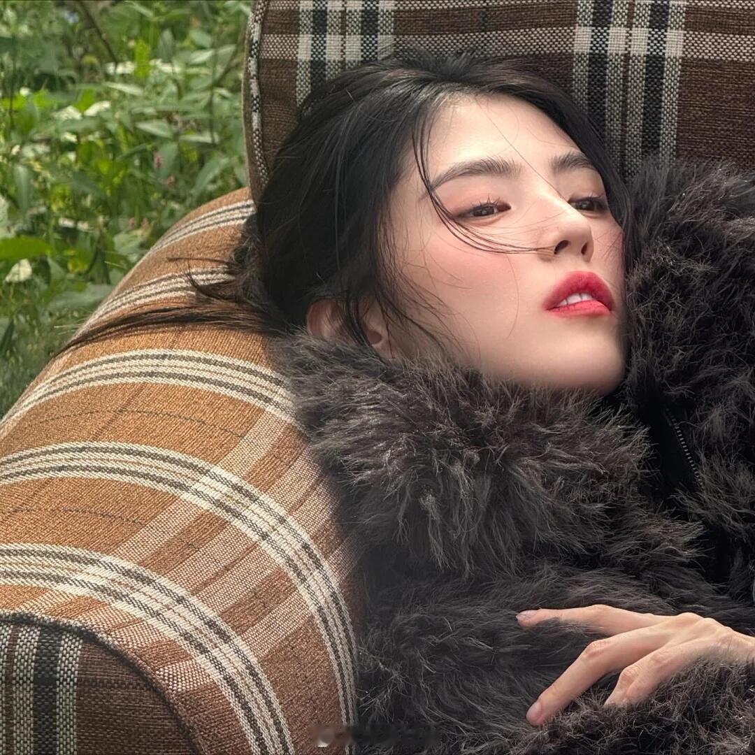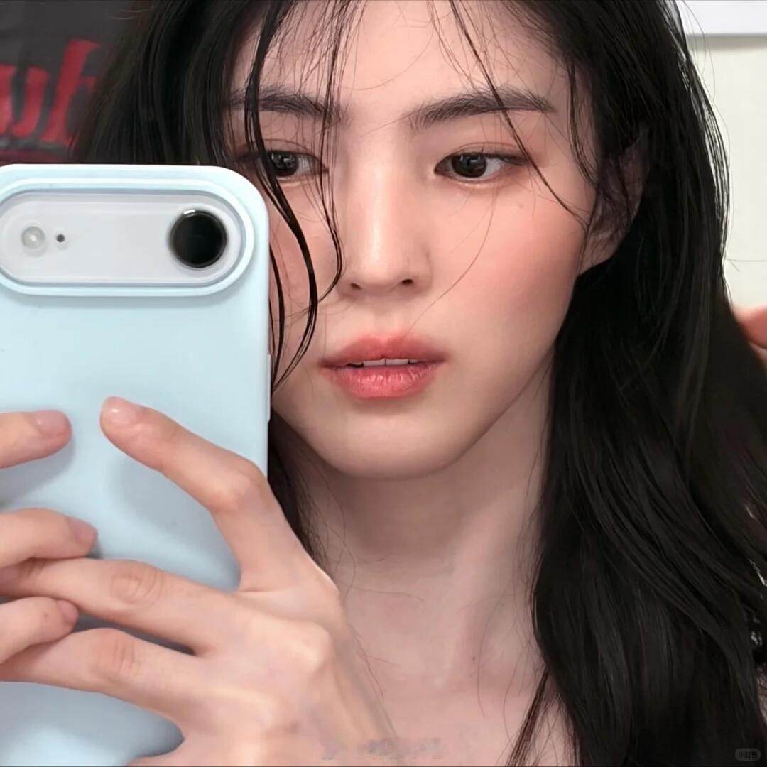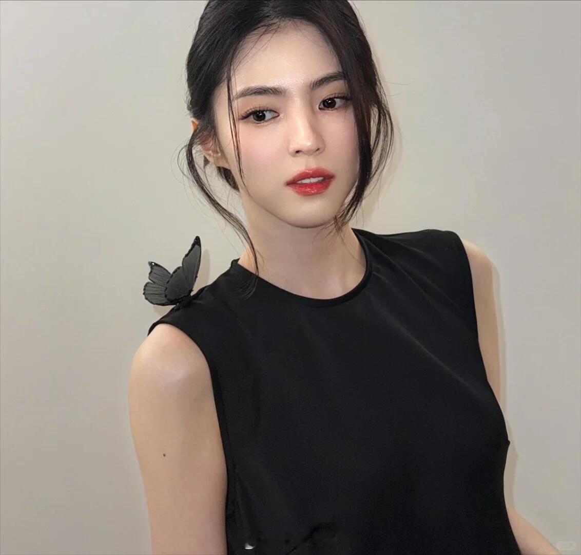 看韩素希的五官,最有意思的是那股反差劲。她脸型偏窄长,高鼻梁撑着立体感,眉眼离得近,眼型带点锐度,嘴角还微微下垂。