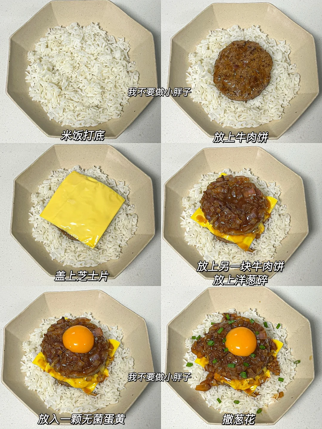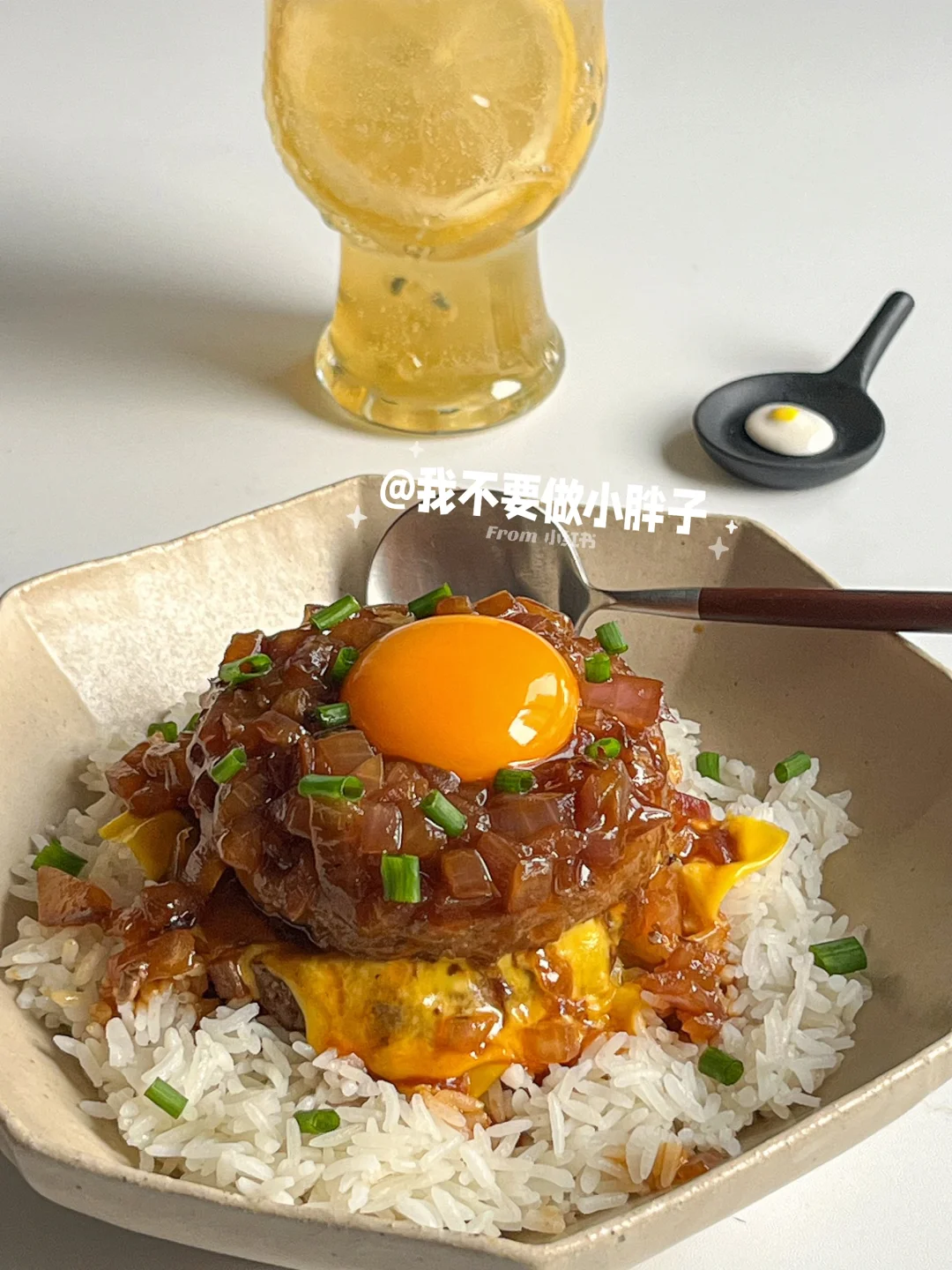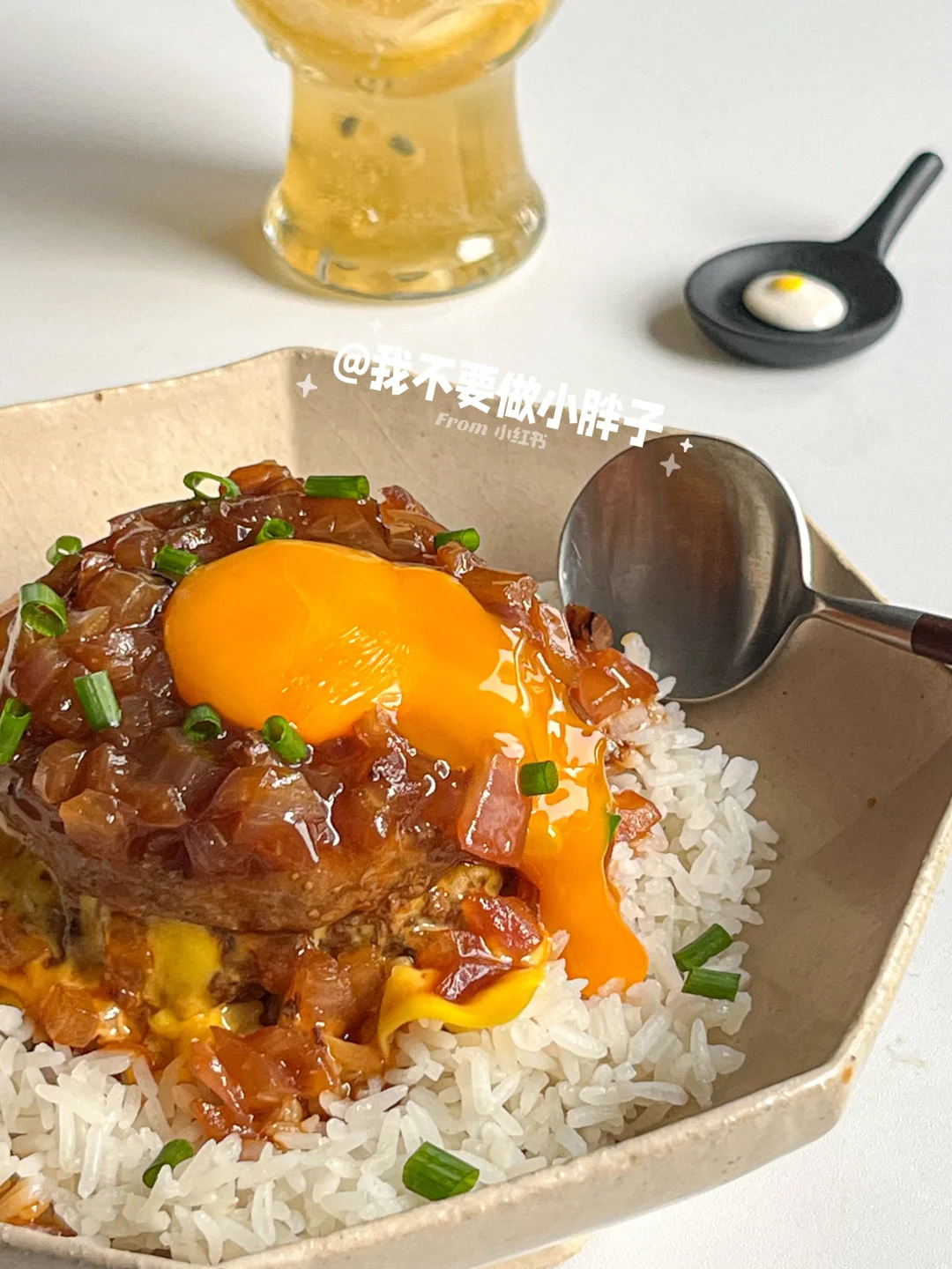 - 🍋 百香果柠檬茶 🍳 芝士双层牛肉饼流心蛋拌饭 - 🧑🏻🍳 准备料汁: 三勺生抽|一勺老抽|一勺蚝油|一勺番茄酱|一勺淀粉|小半碗清水 1.锅中喷油,放入牛肉饼煎熟备用 2.融化一块黄油,放入洋葱碎炒香,倒入料汁,放入牛肉饼煮至汤汁浓稠即可 3.米饭打底-放上牛肉饼-芝士片-牛肉饼-放上一颗无菌蛋黄-撒葱花即可 - 🫶🏻 双层爆汁牛肉饼配上奶香芝士,把无菌蛋黄戳破拌一拌,word天!这一口太绝了,真的太太太好吃啦!!