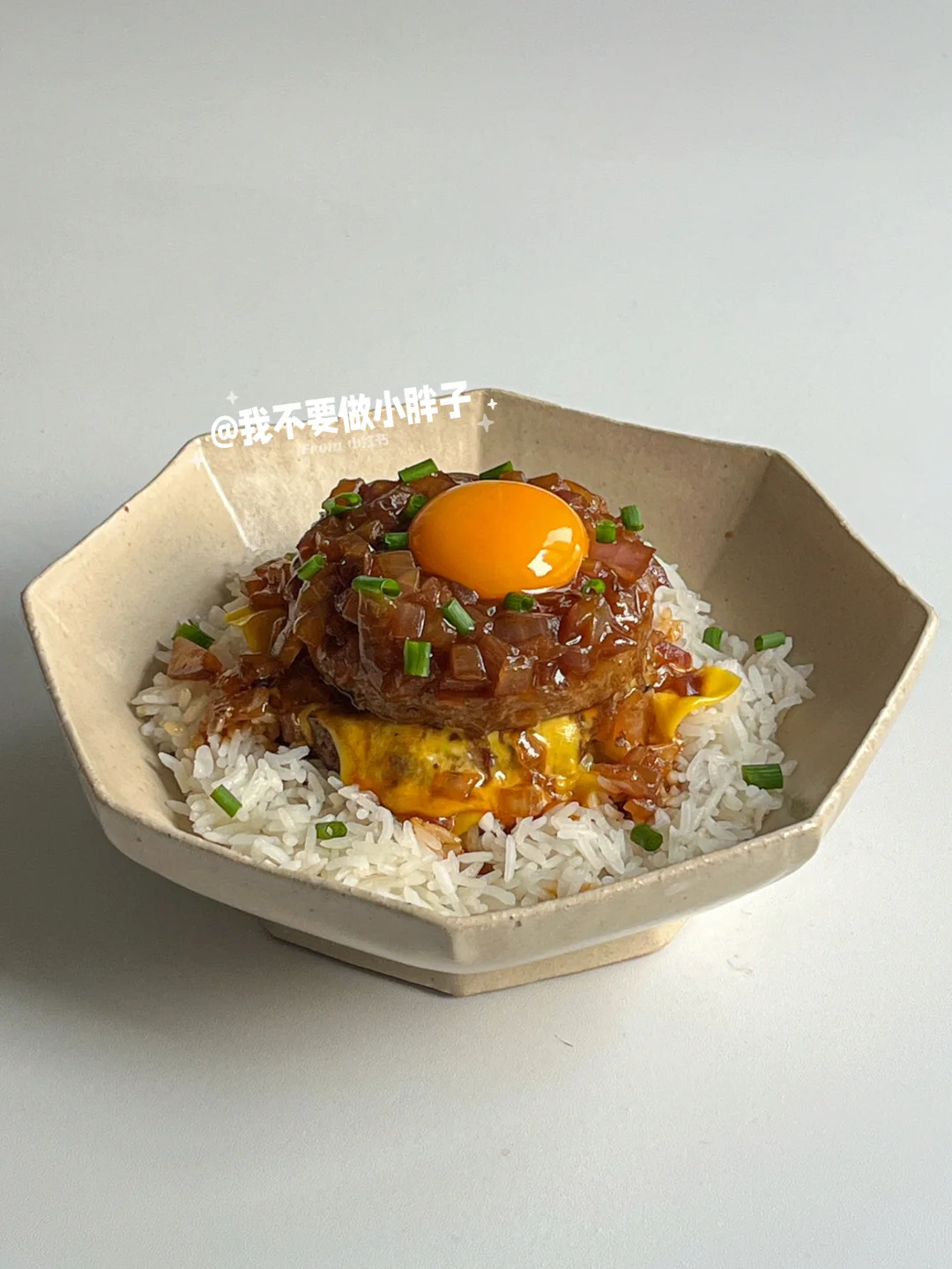 一人食|香拽了❗️芝士牛肉饼流心蛋拌饭🍳