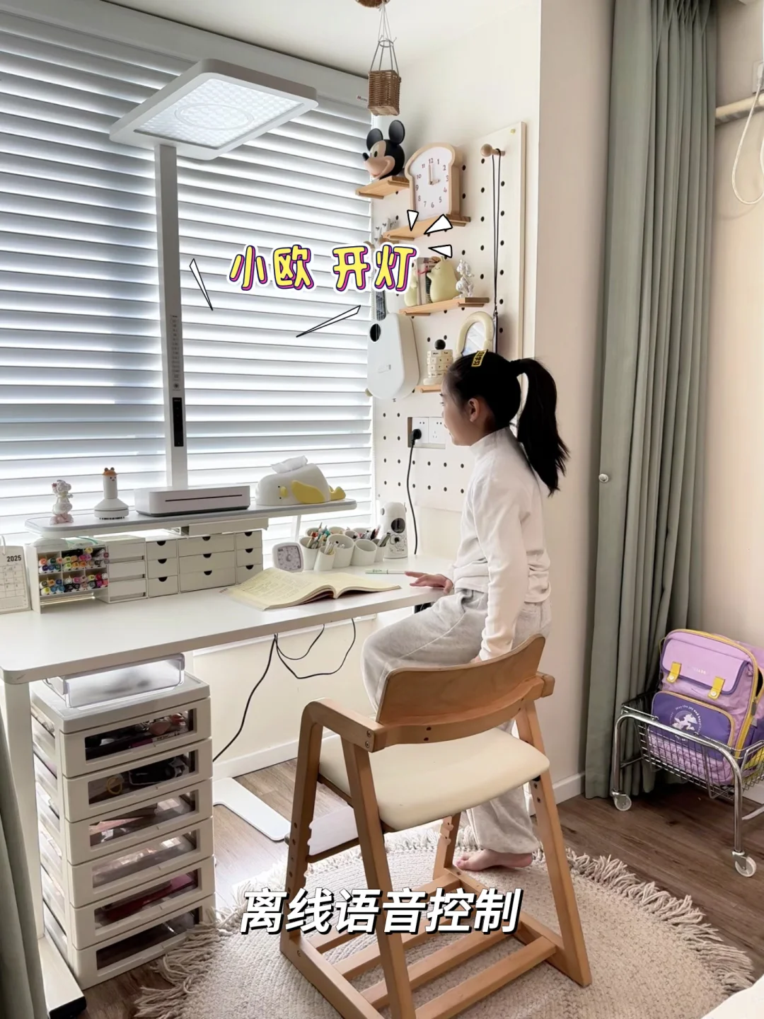 而且它的智能功能也很赞,有三种色温模式能自动调光,还支持离线语音控制,女儿喊“小欧开灯”“小欧调亮”就能轻松操作。灯珠寿命长达7.2万小时,从小学用到中学都没问题[赞R]