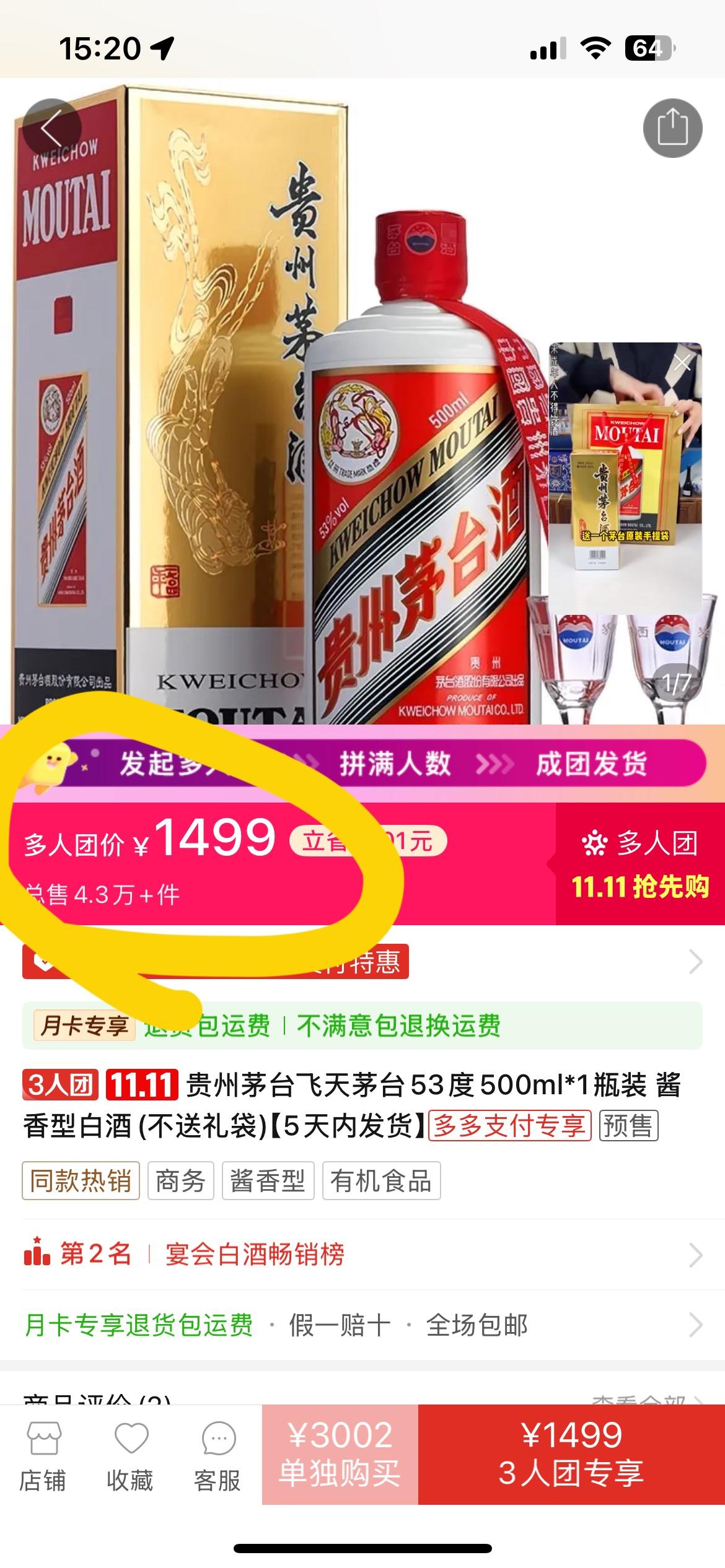 某多上飞天茅台价格已经来到了官方指导价:1499! 我记得前几年我几个伙计还囤