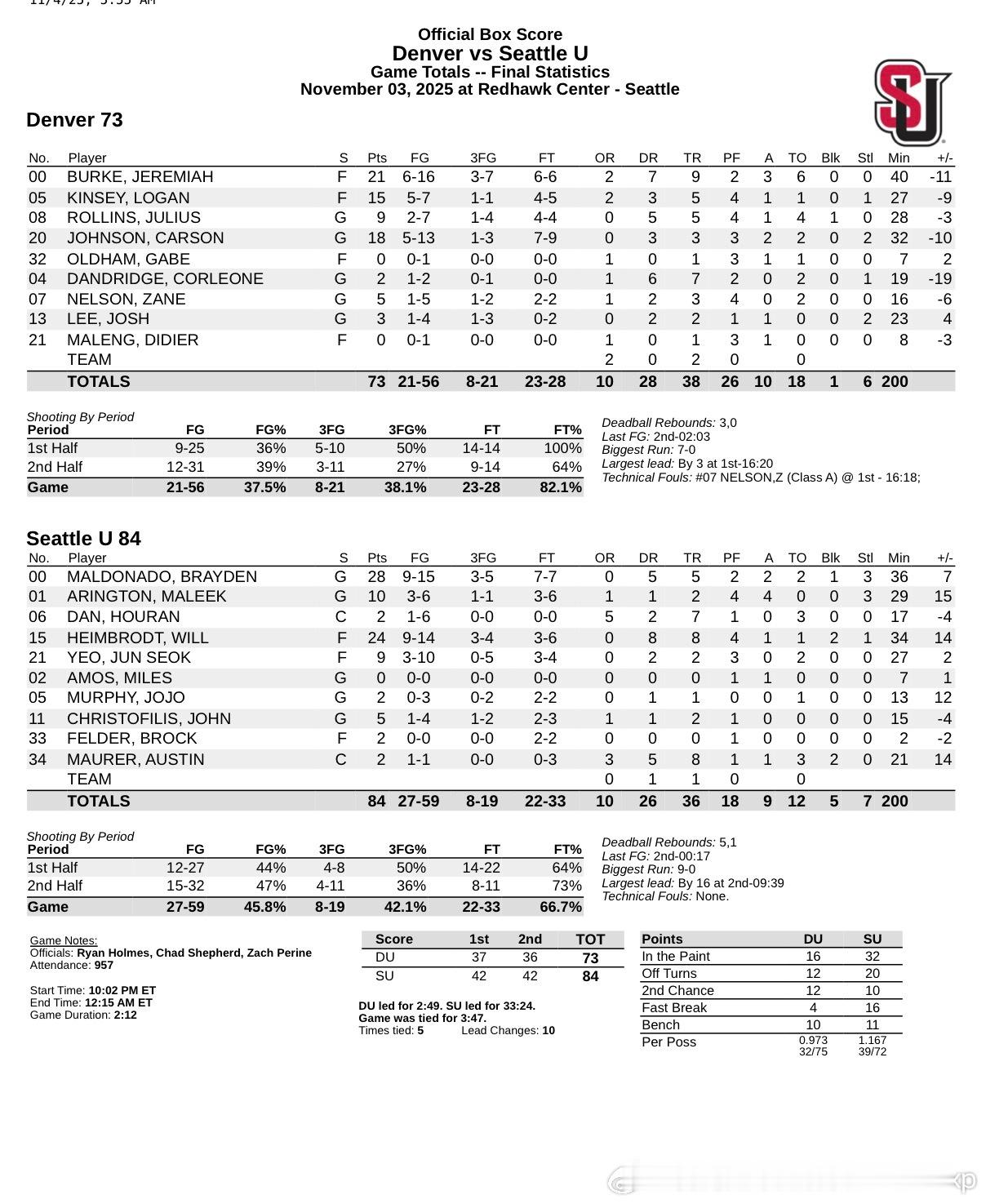 西雅图84比73击败丹佛获得赛季开门红,淡厚然出场17分钟2分7板,吕俊锡出场27分钟9分2板淡厚然ncaa中国球员NCAA[超话]中国男篮[超话]