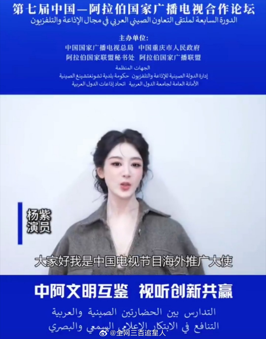 恭喜演员杨紫解锁新身份:中国电视节目海外推广大使,为中阿文化交流助力,这个紫真的好美啊[期待]