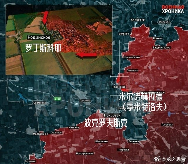 俄乌风云录,罗丁斯科耶陷落。在乌军波克罗夫斯克的防御接连崩溃的背景下,俄军在侧翼