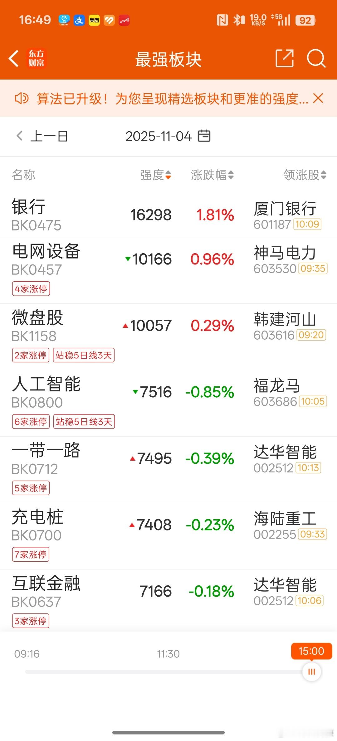 今天最强板块是银行,银行现在主要功能就是调控指数