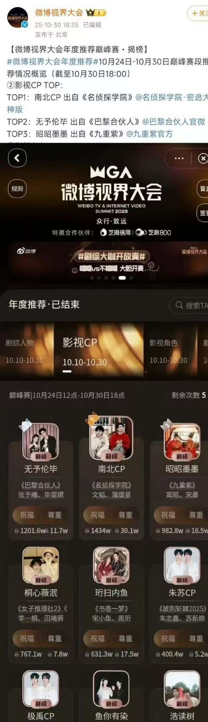 小H小O获影视CP哈哈哈哈不行了,那么影视CP结果选了小H小O