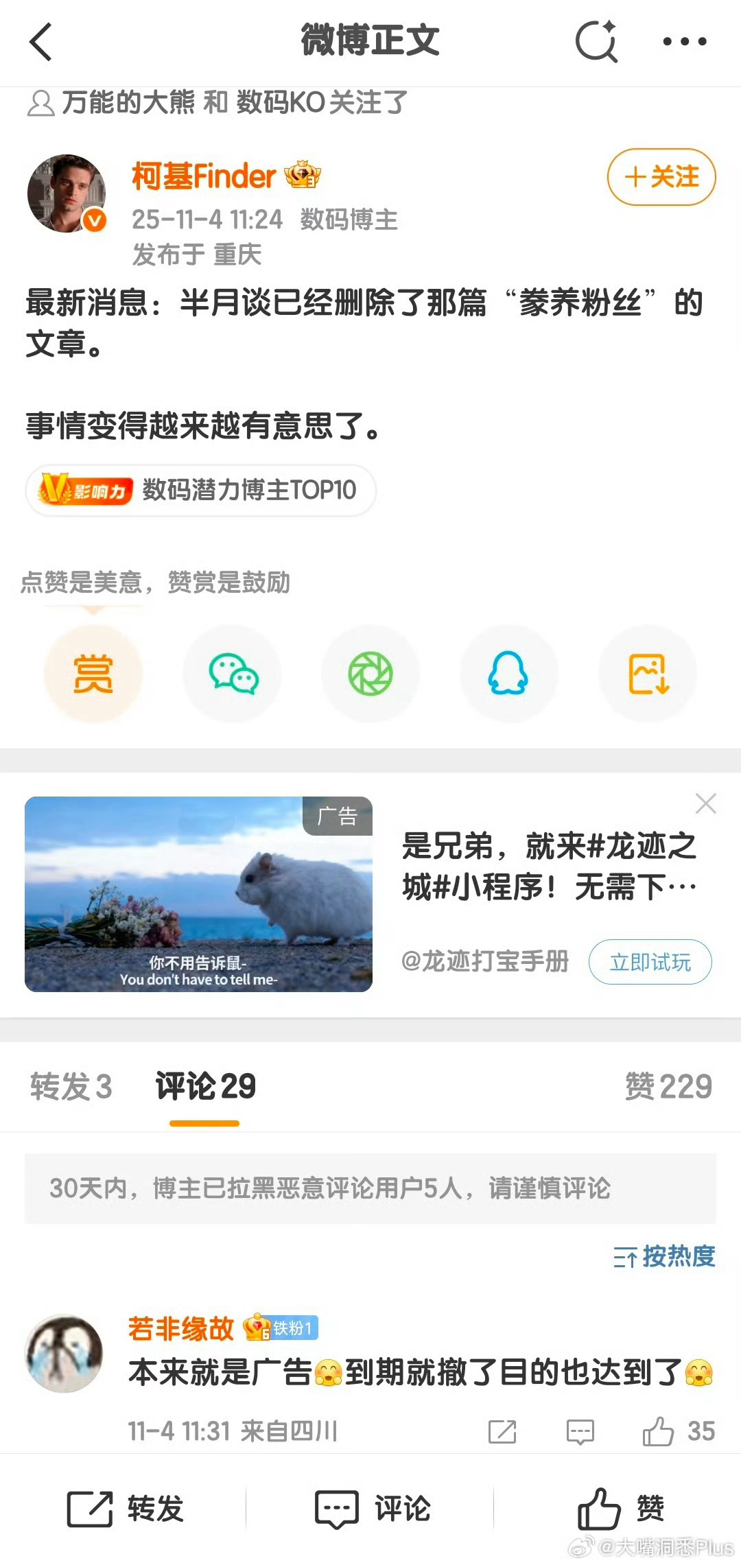 咸吃萝卜淡操心,大号都没了,小号还在这跳[doge]