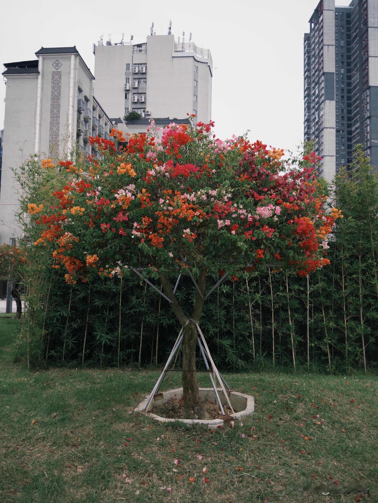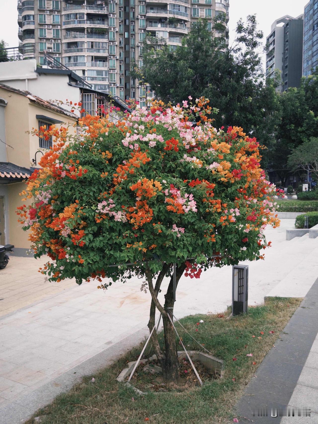 广州陈家祠惊现“彩虹树”! 一棵竟有5、6种颜色。 陈家祠广场这棵三角梅太绝了! 谁见过一棵树上长5、6种颜色啊? 一棵树能有多精彩,来了才知道。 粉的、紫的、红的、橙的… 甚至还有渐变色彩! 远远望去, 像把大自然的调色盘直接挂在了枝头。 秋冬季节能见到这么鲜活的景色, 瞬间被治愈。 阳光洒在花瓣上, 每一种颜色都闪着特别的光。 来往的人都忍不住停下脚步拍照, 这哪里是树,分明是行走的艺术品啊~ 秋天
