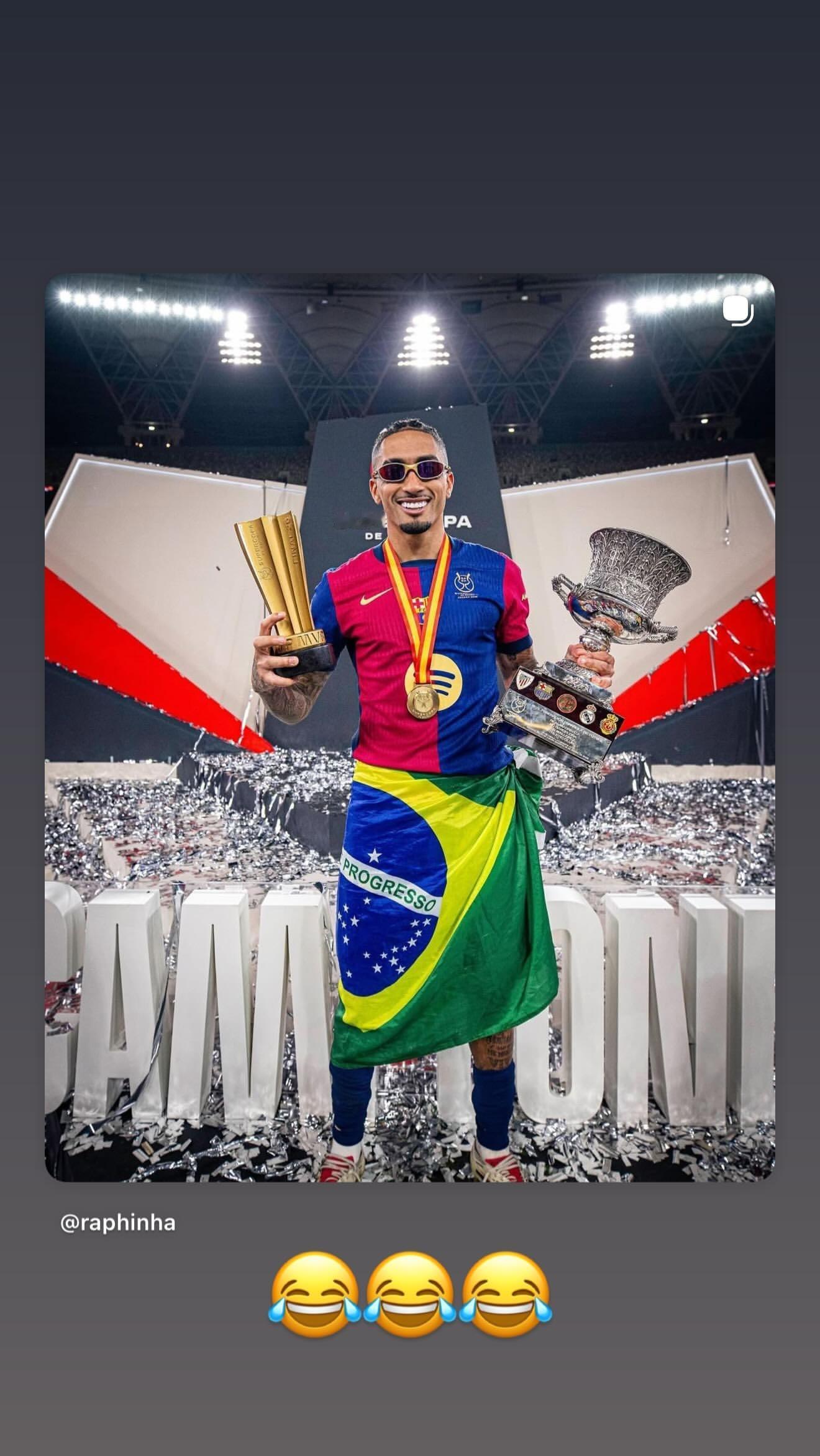 拉菲尼亚ins story疯狂更新自己过往一年的表现数据,配上😂😂😂的表情,疑似回应FIFA年度最佳阵容没有他的决定。巴萨热点现场fifa年度最佳阵容