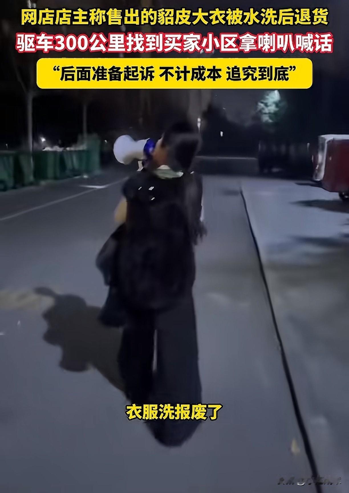 真是太气人了。 近日,山东济宁一位开网店的老板王女士发视频称,有一位顾客在她店买了一件貂皮大衣,这件衣物很贵价值2000元左右,没想到,那位顾客买回去不久就申请退款,把大衣给退了。 王女士收到大衣一看硬邦邦的,因此认定这件大衣已经洗过水,于是她打电话给顾客,不料这位顾客却死活不承认,无奈之下,王女士只能选择报警处理,可是对方却以自己怀孕在身为由,拒绝见面。 “这件大衣已经硬邦邦的,就像塑料一样,肯定是不能拿来卖了”王女士说,于是一怒之下,直接开车300公里到这位顾客的小区,然后拿起喇叭在小区里通告,她就是要让整个小区都知道这种人,王女士还说后续还会起诉这位顾客,让她付出代价,看来她这一次是真的气坏了。 确实,现如今生意这么难做,可是有些人却占了平台的空子,占了便宜还卖乖,简直是可耻又可恨。 你申请退货可以,但是前提是不能影响人家的后续售卖,像这起事件中的这位顾客,把人家的大衣洗了,造成的损失只能由王女士来承担,顾客不仅不承认,而且还拒绝协商沟通,这换做是谁都会很气愤吧? 对此,您认为呢?