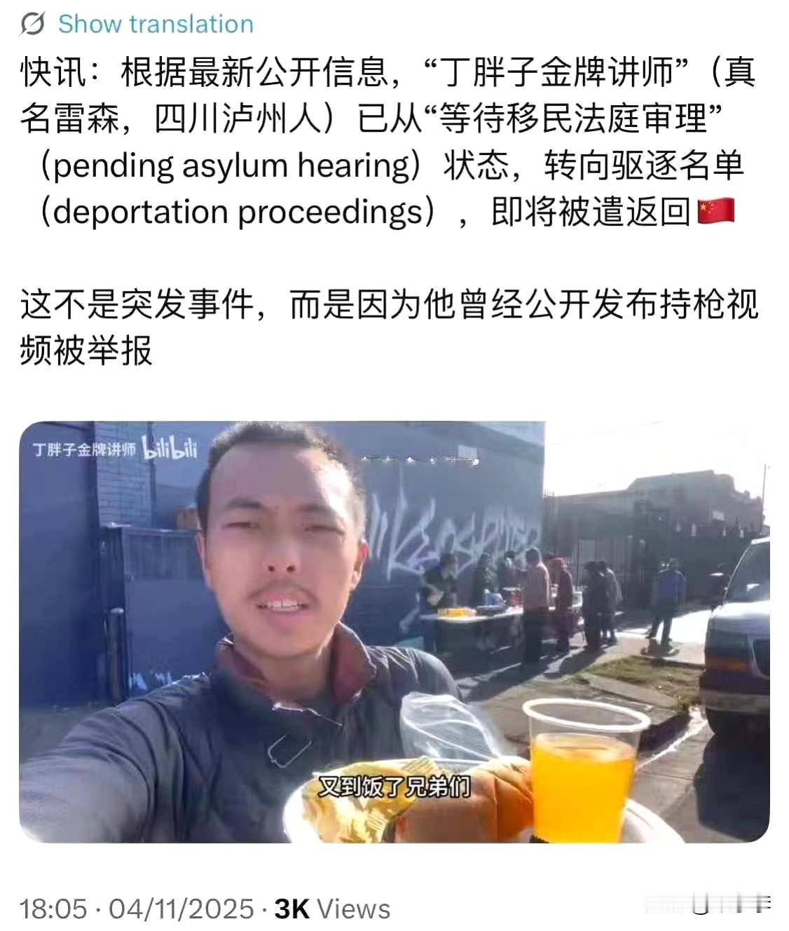 丁胖子金牌讲师的苦恼:他发的视频被人翻译成英文发给美国税务局和美国媒体,举报他偷税漏税…都流浪的苦哈哈了,还要让缴税? 而且,现在被举报又要被遣返???[发怒][发怒][发怒]不要过来啊!!!丁胖子律师 丁胖子 丁胖子乞讨