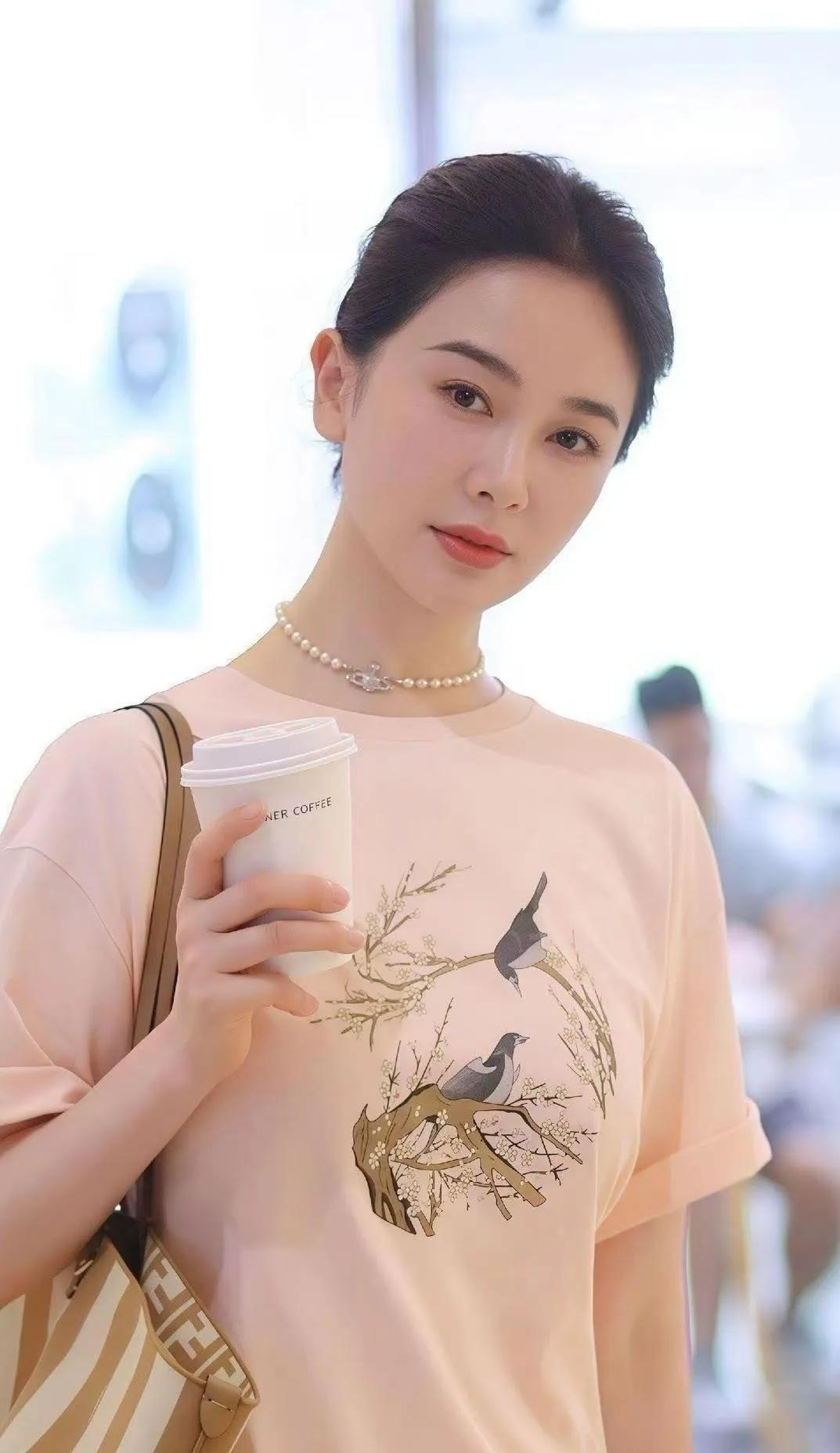 这才是“少妇天花板”的正确打开方式吧! 谁看了不说一句绝!一身浅粉花鸟T恤搭配珍珠颈链,手里拿着咖啡,挎着精致包包,简约穿搭被她穿出了高级感。 妆容精致却不张扬,气质温婉又带着点清冷感,这种介于少女和成熟女性之间的魅力,真的把“少妇感”拿捏得恰到好处,说是天花板不过分吧!