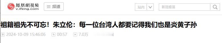 朱立伦出来表态了!朱立伦在一次演讲中对台湾省人民表示,他们每一个台湾人,都要记得他们也是炎黄子孙,也是中国人,并强调在台湾,他们也能大声的说他们的祖籍在哪,是哪里人。   麻烦看官老爷们右上角点击一下“关注”,既方便您进行讨论和分享,又能给您带来不一样的参与感,感谢您的支持! 朱立伦指出,过去几十年里,随着岛内一些政策的推进,尤其是民进党推行的所谓“去中国化”政策,很多年轻人对中华文化和自己的历史认知越来越模糊。 对他们来说,“中国人”的概念似乎逐渐淡化,甚至成了争议的词语。朱立伦认为,这种状况如果持续下去,不仅会让台湾与大陆的文化联系变得疏远,也会削弱台湾年轻人对自身历史和民族文化的认同感。 为了改变这种局面,朱立伦提出了一系列的思路。他强调文化认同的培养不能只是口号,而是要通过实实在在的行动来实现。 比如,通过两岸间持续的文化交流活动,让台湾的年轻人有机会亲身接触大陆的传统文化、历史遗迹以及民俗风情。 只有当他们真正去体验、去感受,才能在心里建立起与中华文化的情感联系。这不仅是简单的参观或旅游,而是一种深度的文化体验,让历史的厚重感和文化的丰富性真实地融入他们的生活。 朱立伦认为,台湾人民尤其是年轻人,要有机会了解自己的家族渊源和祖籍所在。 过去,由于教育和社会环境的影响,很多年轻人可能只知道自己是“台湾人”,却不清楚自己的家族最早来自哪里,或者祖辈在大陆的历史是什么样的。 朱立伦提出,认识自己的祖籍并不是为了政治宣传,而是为了让每个人明白自己的根在哪里,这种历史认知可以增强文化认同感,也有助于形成对中华文化的尊重和认同。 朱立伦在演讲中特别提醒,文化认同不是靠一时的言语或表态就能建立的,它需要时间,需要经历,更需要实际的体验。 他批评了岛内一些政治势力过度强调“去中国化”,这种做法虽然短期内可能有政治效果,但长期来看,却会让年轻人和中华文化逐渐疏离。 对于一个社会来说,如果年轻一代失去了对自身文化的认同,那么未来的社会凝聚力和文化传承都会面临严重挑战。 在这一背景下,朱立伦还提到,要通过两岸民间的接触和交流来强化文化认同。比如,鼓励青年学子参加两岸联合学术项目、文化节、历史研学旅行等活动; 让年轻人在实际体验中理解中华文化的博大精深,从而在心理上和情感上产生认同感。这种认同感不是简单的“说自己是中国人”,而是从内心深处认识到中华文化的价值,并愿意去传承和维护。 除此之外,朱立伦还强调了家庭教育和社区文化的重要性。他指出,很多台湾家庭在日常生活中,尤其是对孩子的教育里,其实潜移默化地传递了中华文化的核心价值。 如果在教育和社会环境中加强对历史和文化的教育,让孩子从小就接触和了解中华文化的精神内核,这种认同感会更自然、更稳固。 朱立伦说,文化认同的传承不是靠政治口号,而是从生活点滴做起,让每个人都能从小就感受到自己的文化根脉。 演讲中,朱立伦也提到一个很现实的问题:台湾和大陆长期的政治隔阂,让很多年轻人对历史产生误解,对文化有偏见。这些误解和偏见如果不纠正,可能会影响未来两岸关系的发展。 朱立伦强调,通过文化交流,让年轻人亲身体验大陆的生活和文化,是消除隔阂、增加理解、强化认同的有效方式。 朱立伦的这次表态,不仅是政治上的一次发声,更像是一种文化提醒。他希望让台湾年轻人看到,自己身上有深厚的历史渊源和文化根基,这种认同感比任何政治标签都重要。 通过持续的两岸文化交流,让台湾年轻人亲身体验中华文化、理解中华历史,从而在情感和认知上与大陆保持联系,这才是真正的文化传承之道。 可以说,朱立伦的讲话直指核心问题,文化认同危机正在影响年轻一代,他希望用行动和教育,让台湾的年轻人重新认识自己的历史身份,认清自己的文化根脉。他的思路很现实,也很具体,不是空谈,而是要通过生活和经历让认同感在年轻人心里生根发芽。 总之,这一次的表态,是一次深刻的文化提醒,也是一次政治信号。它告诉台湾的年轻人:你们的身份、你们的历史、你们的文化根脉,不应该被忽视,也不能被政治标签所取代。 记住自己是炎黄子孙,了解自己的祖籍和文化,这是每一个台湾人应有的历史自觉和文化自信。 朱立伦希望通过这样的方式,让文化认同回到年轻人的生活中,让两岸人民的情感纽带更加稳固,让中华文化的根脉在台湾得以延续。 信息来源:凤凰网视频《祖籍祖先不可忘!朱立伦:每一位台湾人都要记得我们也是炎黄子孙》