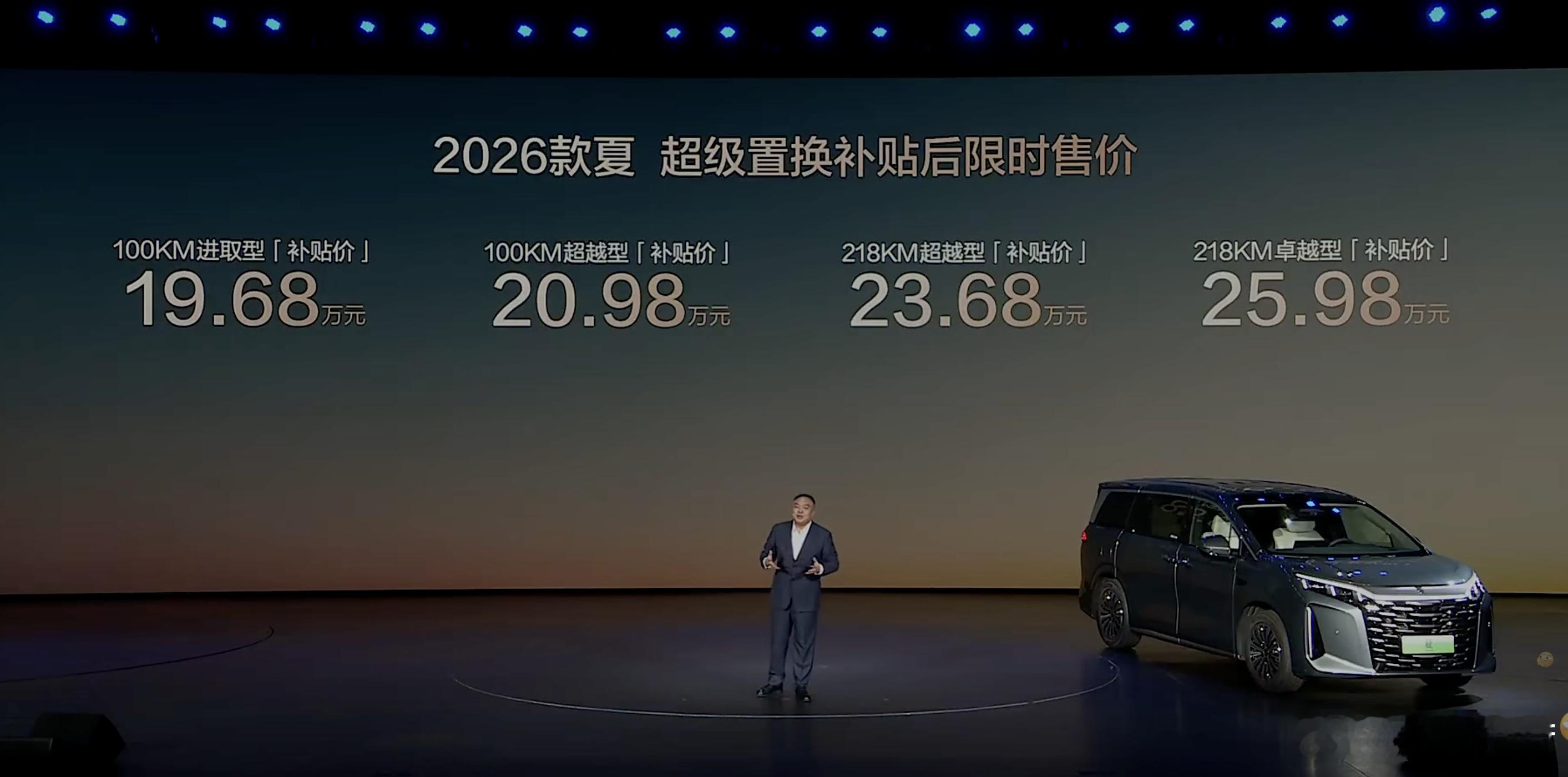 现款车型起售价是24.98万,2026款车型通过叠加政策,起售价拉低到了19.68万,这是一个能绝对吸引到MPV消费者眼球的价格。