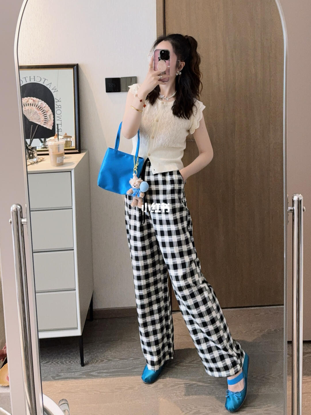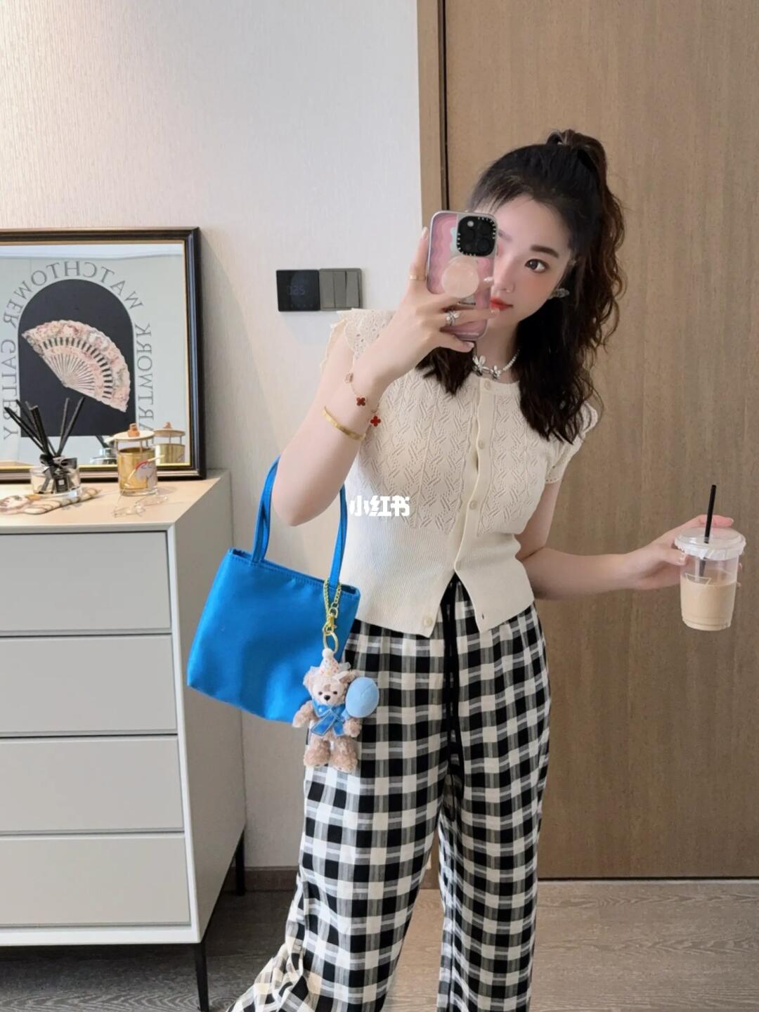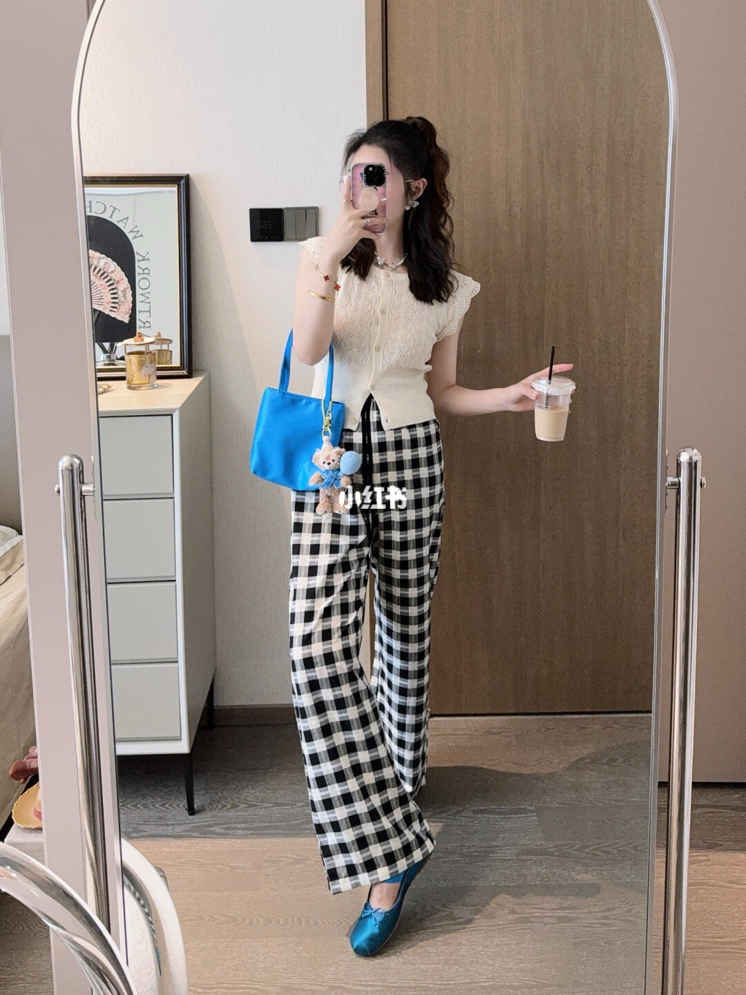 朋友推荐的格子冰丝裤(一开始我是拒绝的😅)、结果穿上以后打lian了!!这裤子也太舒服了吧!夏天就喜欢这种冰冰der凉快舒服der感觉!