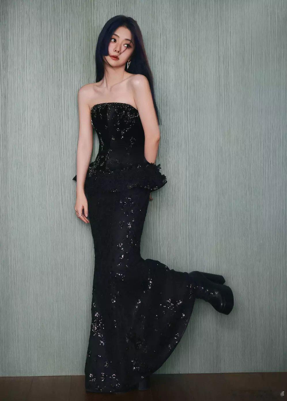 分享娱乐[超话]分享娱乐 谭松韵穿黑色亮片裙酷范儿十足!公主切造型又美又飒