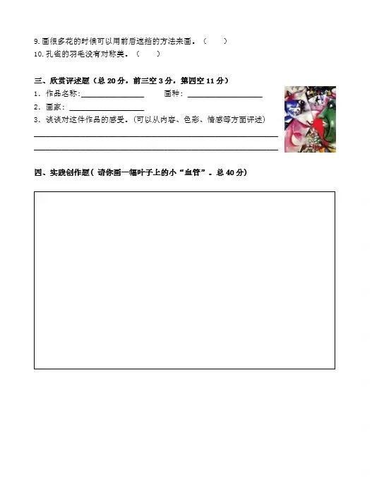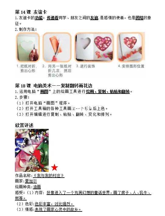 人教版美术四下|总复习资料+练习卷+答案